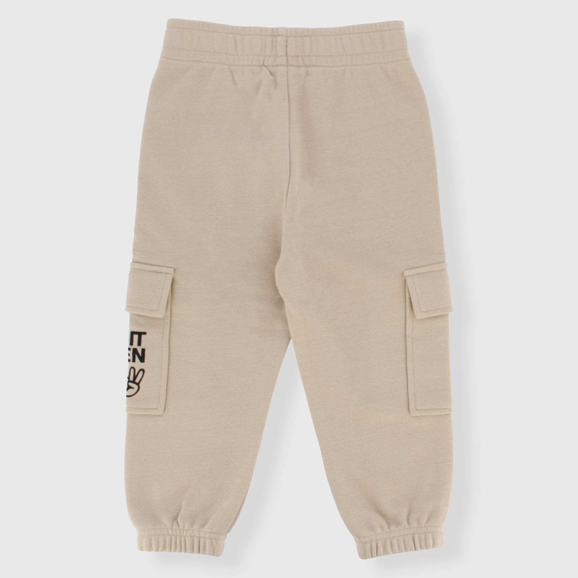 Sweatshirthose mit elastischem Bund. Taschen und große Seitentaschen mit aufgedrucktem Schriftzug. Elastischer Boden.