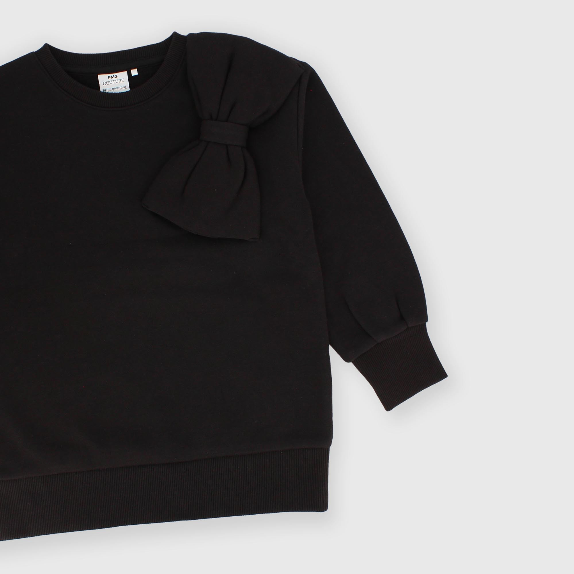 Oversize Sweatshirt, Rundhalsausschnitt, mit langen Ärmeln. Kragen, Bündchen und Saum in Rippstrick. Schleife auf der Schulter aufgenäht.