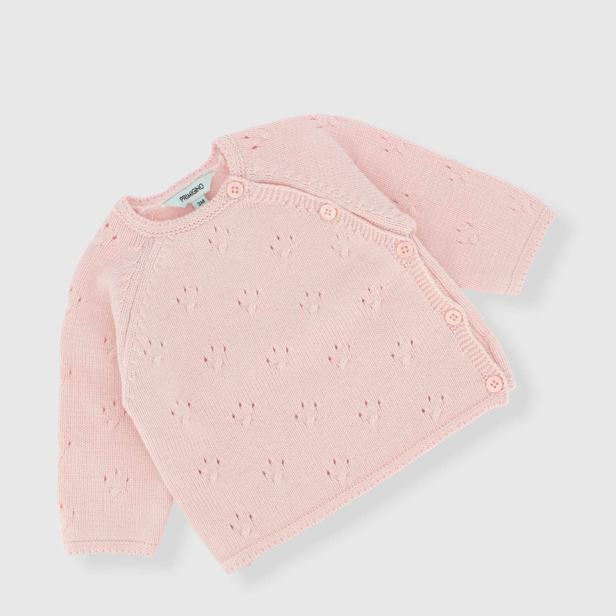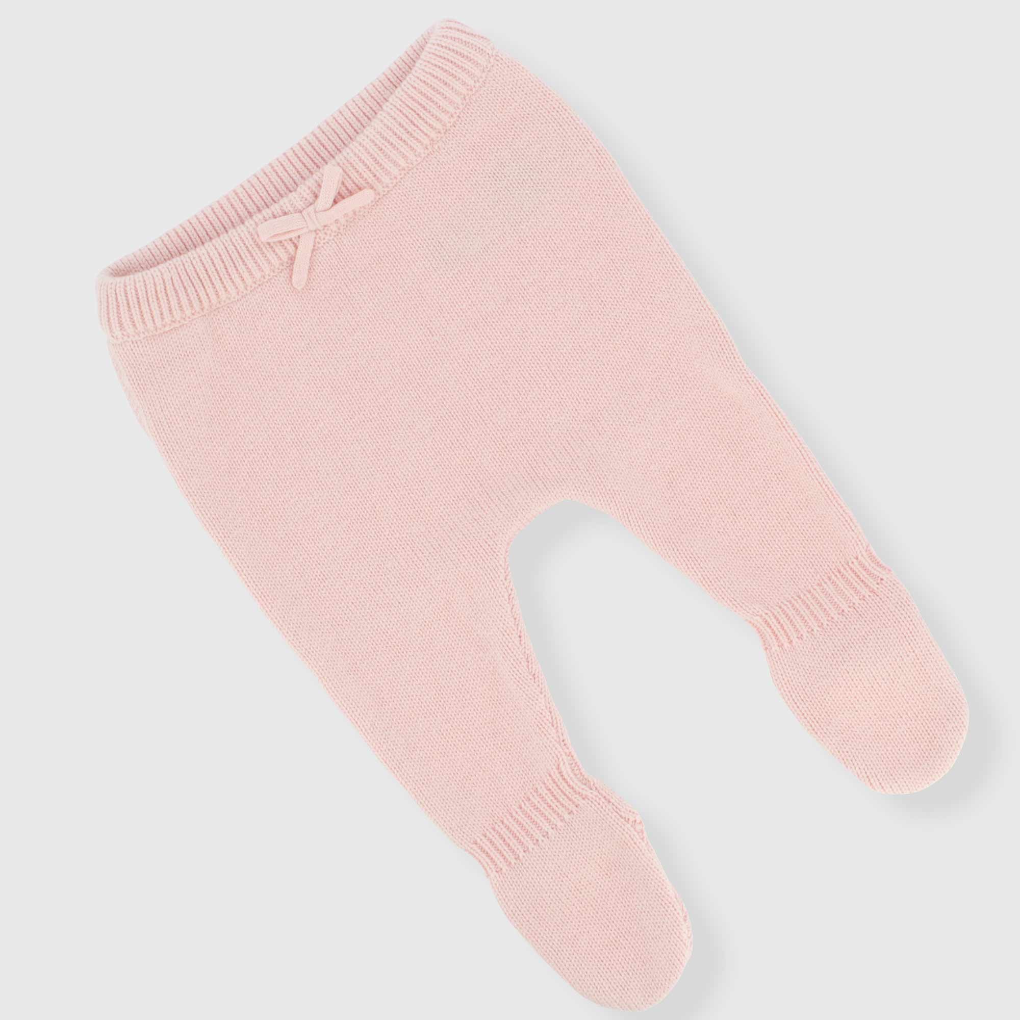 Zweiteiliges Set aus weichem Strick. Langarmpullover. Kimono-Verschluß. Gamasche mit elastischem Bund mit Füßen.