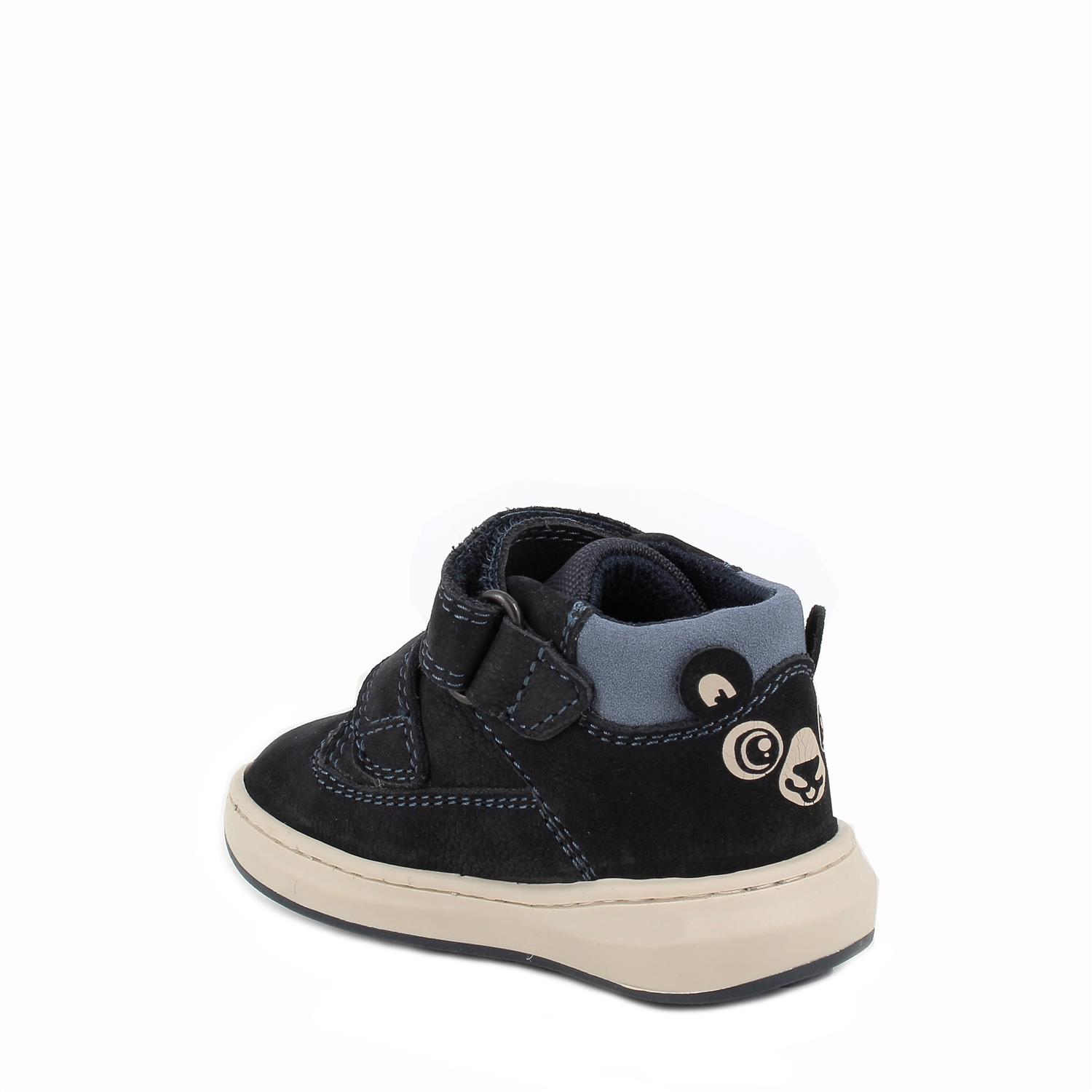Diese ersten Schritt-Schuhe sind einladend und schützend und verfügen über die Qualität und Haltbarkeit von Leder. Es handelt sich um Stiefeletten mit Doppelriemen die von den Kleinen leicht angezogen werden können und von dem lustigen Teddybär-Aufdruck an der Ferse begeistert sein werden. Es ist ein minimalistisches und gleichzeitig trendiges Modell. Die Sohle hat eine breite Form, ist mit dem Obermaterial vernäht, um mögliche Ablösungen zu vermeiden und ist sehr widerstandsfähig. Die anatomische Innensohle ist herausnehmbar und mit Leder überzogen, um Atmungsaktivität und Hygiene zu gewährleisten.