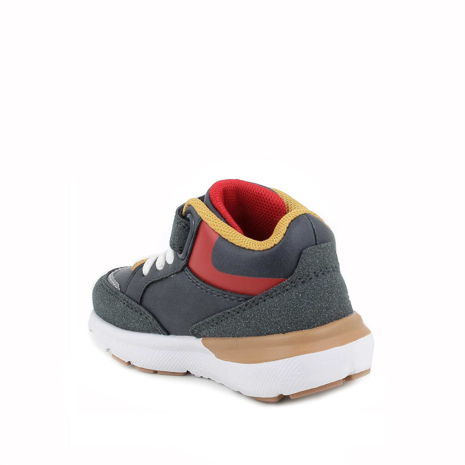 Die Turnschuhe für Kinder die aufwachsen müssen, die Komfort, Widerstandsfähigkeit und Unterstützung an den richtigen Stellen garantieren. Dieses Modell ist auch trendy und sehr leicht so dass es alle ihre Bewegungen folgt ohne sie zu ermüden. Dank der elastischen Bänder und des einzelnen Riemens wird es im Handumdrehen getragen und angepasst. Die Rillen auf der Lauffläche erhöhen die Flexibilität der Sohle. Die anatomische Innensohle ist herausnehmbar und mit Leder bezogen um Atmungsaktivität und Hygiene zu gewährleisten.