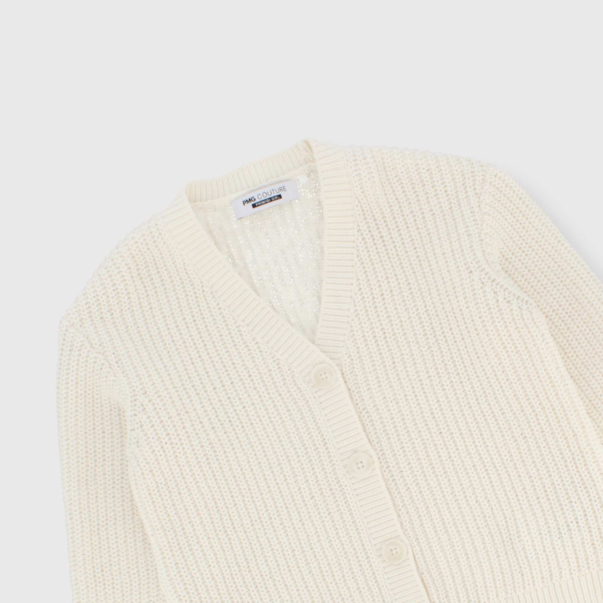 Weicher Strick-Cardigan mit V-Ausschnitt und langen Ärmeln. Knopfverschluss vorne.