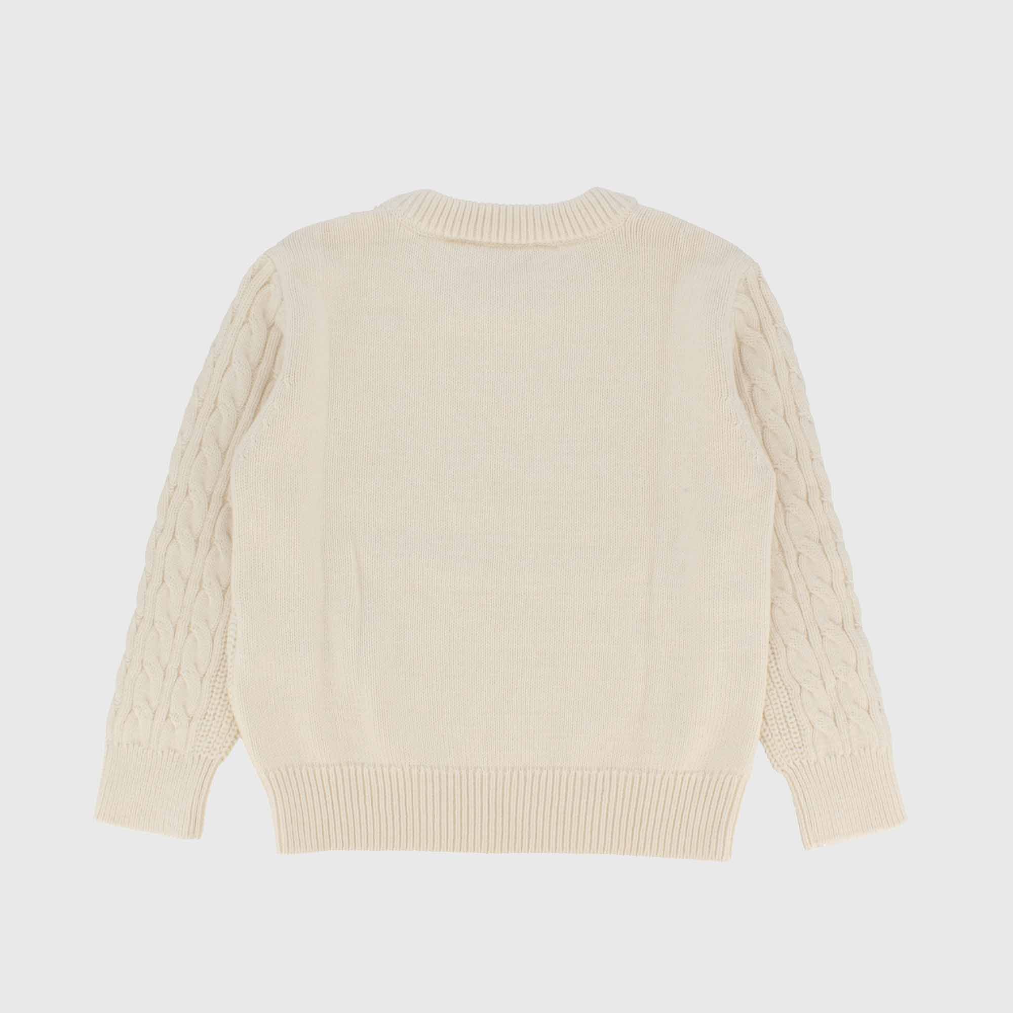 Pullover mit Rundhalsausschnitt aus Zopfmuster und langen Ärmeln.