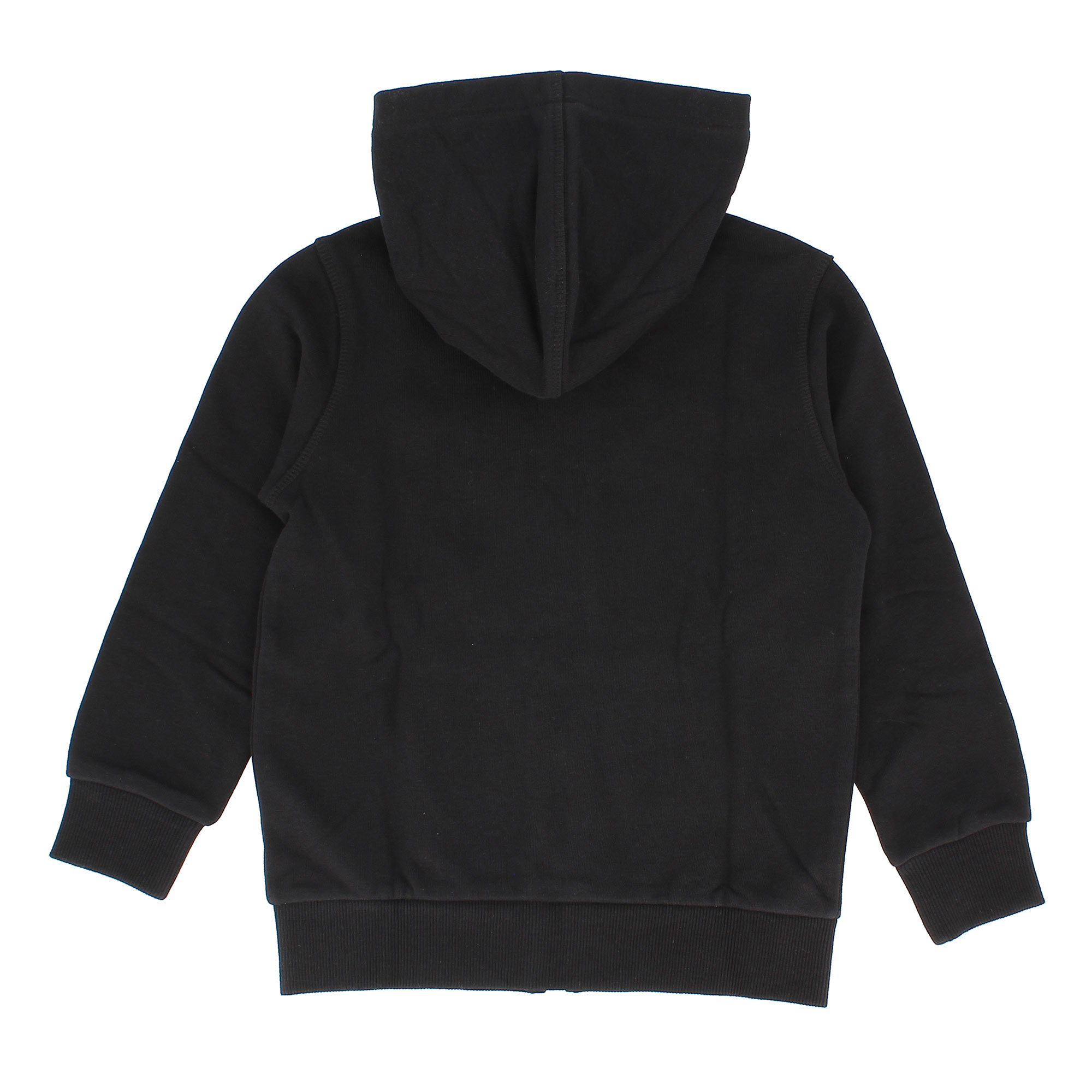 Kapuzenpullover, lange Ärmel. Reißverschluss vorne. Kängurutasche und Logo auf der Vorderseite gedruckt.