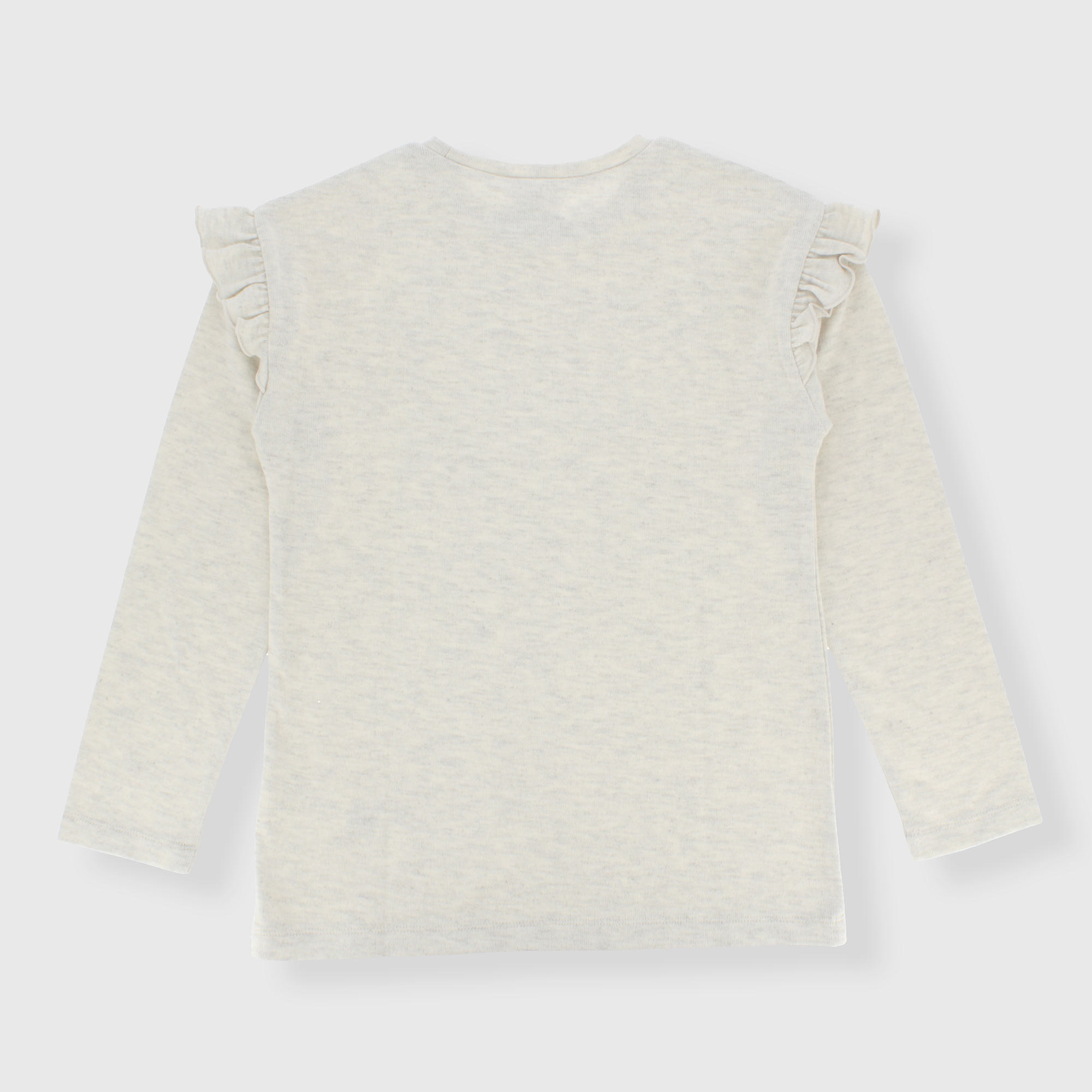 Langärmliges T-Shirt aus weichem Stoff. Rüschen an den Schultern.