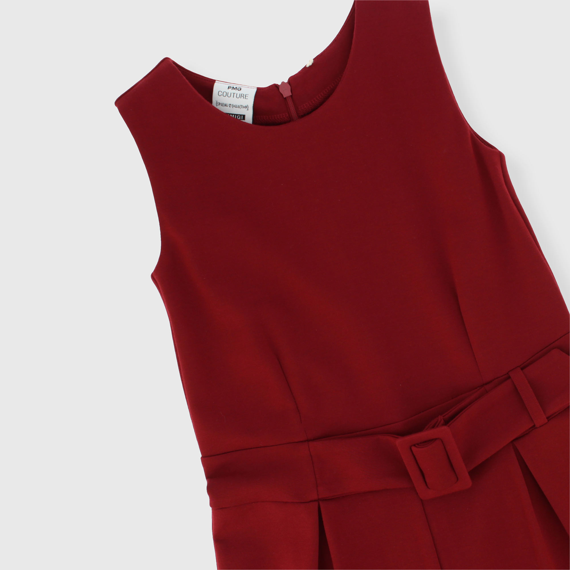 Overall mit runder Ausschnitt, Armausschnitte. Reißverschluss auf der Rückseite. Fake-Gürtel an der Taille.