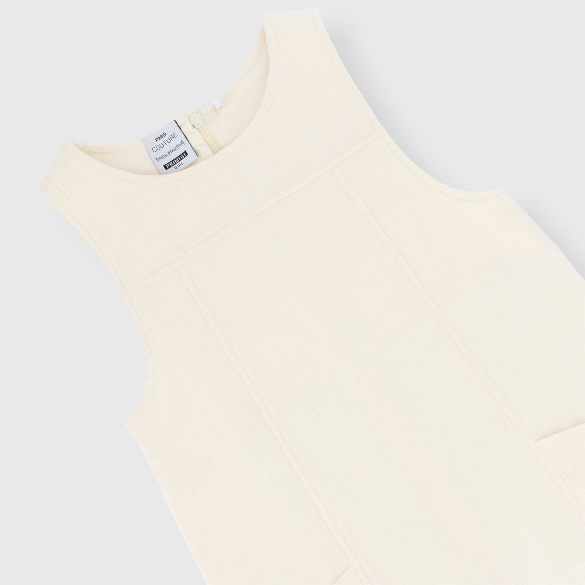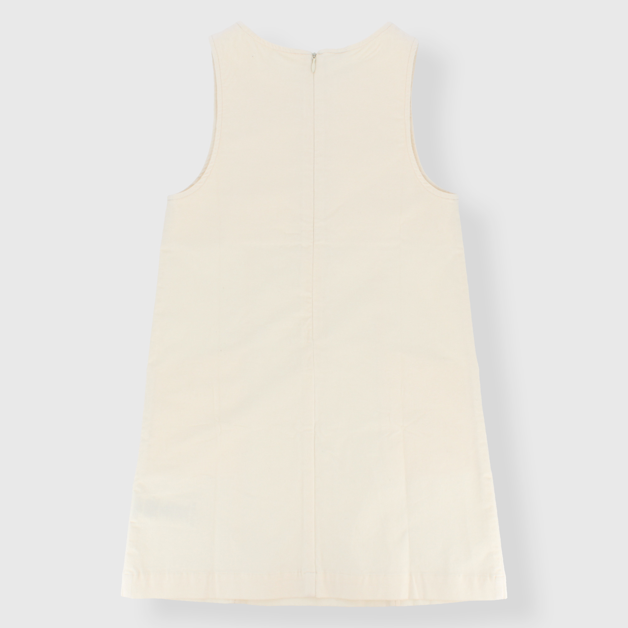 Cordkleid, Rundhalsausschnitt, ärmellos. Reißverschluss auf der Rückseite. Taschen auf der Vorderseite.