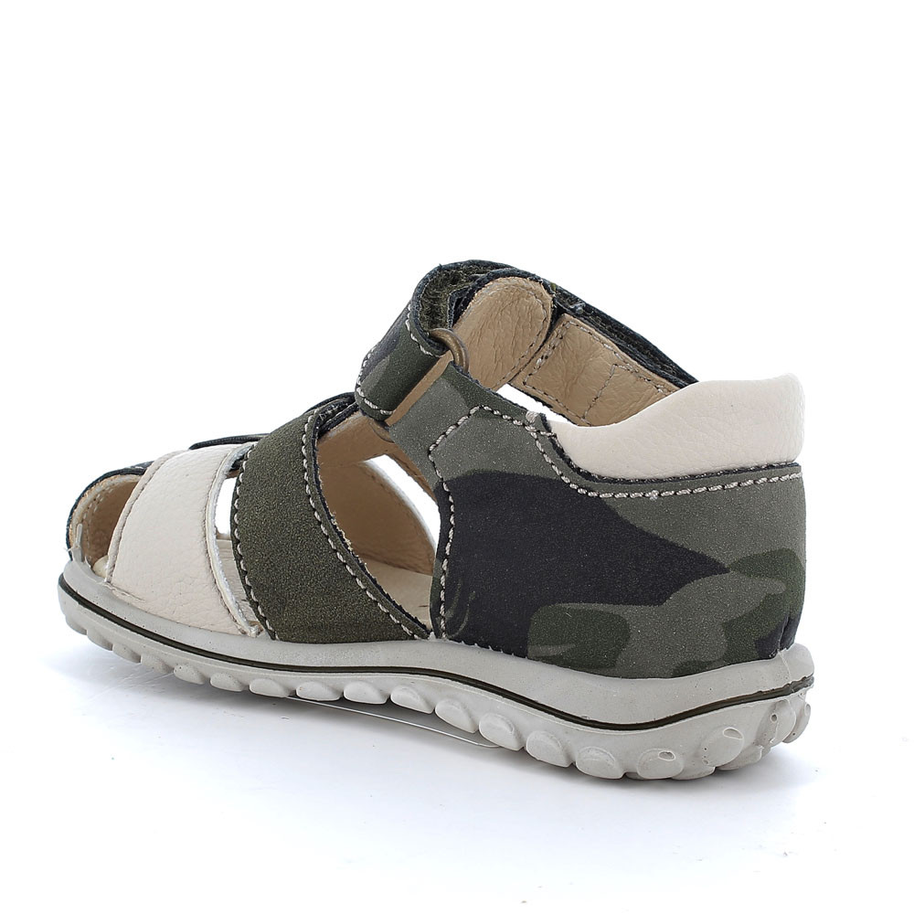 SEMI-OPEN SANDALS WITH THE HIGHEST STANDARDS OF LIGHTNESS, STRUCTURED TO ENSURE A DELICATE SUPPORT IN THE FIRST STEPS. THE MINIMAL DESIGN OF THE UPPER OFFERS A PERFECT COMBINATION OF FRESHNESS AND PROTECTION. BOTH LINING AND INSOLE ARE IN CHROME-FREE LEATHER TO CREATE AN IDEAL AND HYGIENIC MICROCLIMATE AND GUARANTEE THE RIGHT WELLNESS FOR THE WHOLE DAY. THE SOLE, EQUIPPED WITH A REAR SHOCK ABSORBER, IS ALSO PARTICULARLY FLEXIBLE TO FOLLOW THE CHILD'S MOVEMENTS.