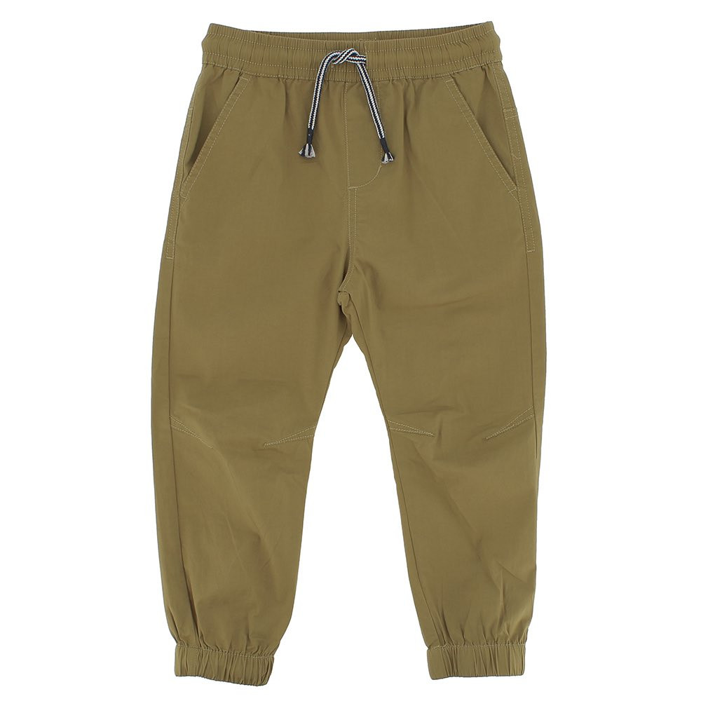 Poplin jogger trousers with elasticated waist and front laces. Side pockets at the French-style. S hooting on the knees and bottom with elastic