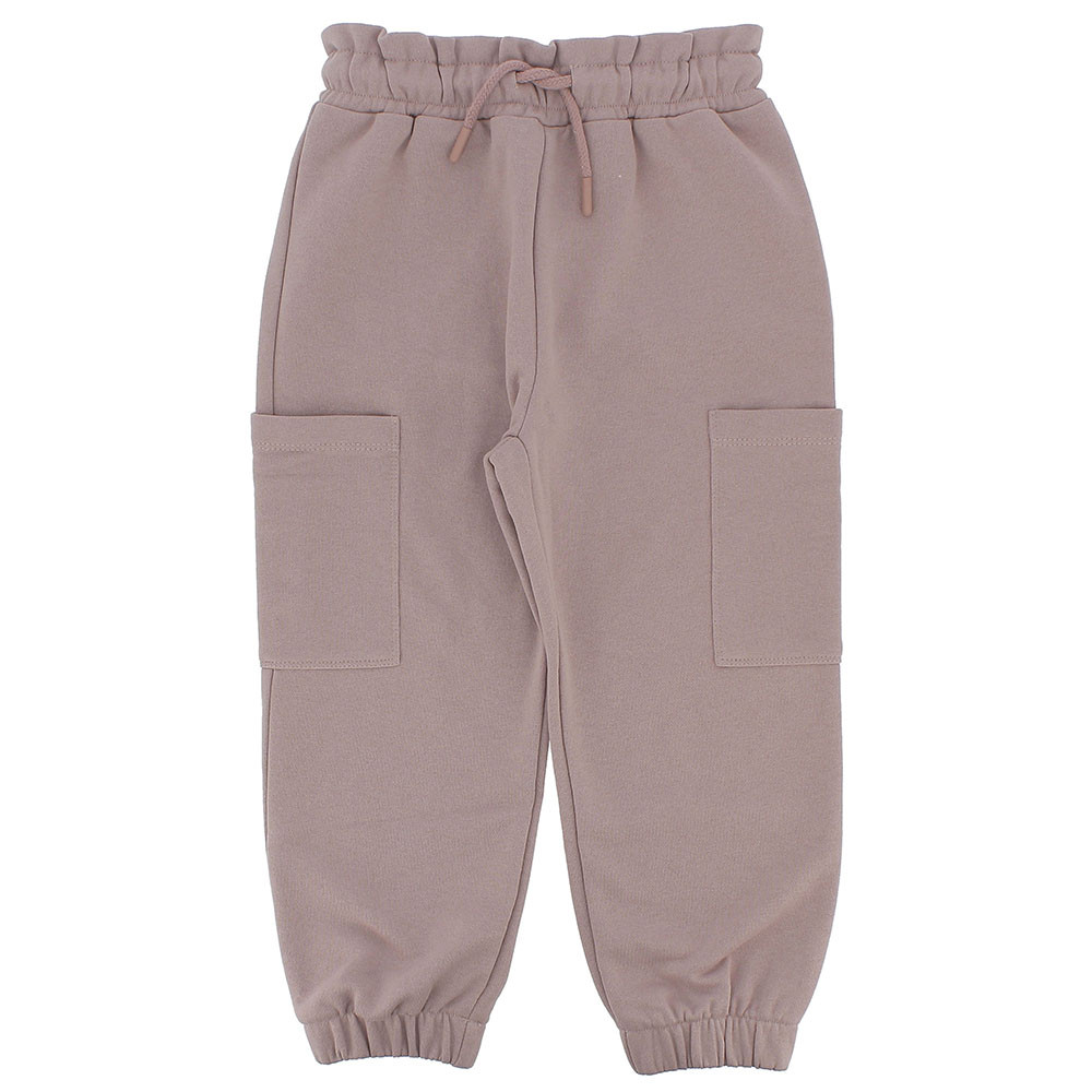 Sweatshirt trousers with elasticated waist and front laces. Side pockets and bottom with elastic. T his garment is eco-sustainable because it is mainly made with recycled fibers.