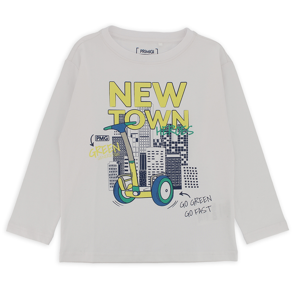Oversized jersey T-shirt, crew-neck, long-sleeved. Front printing.