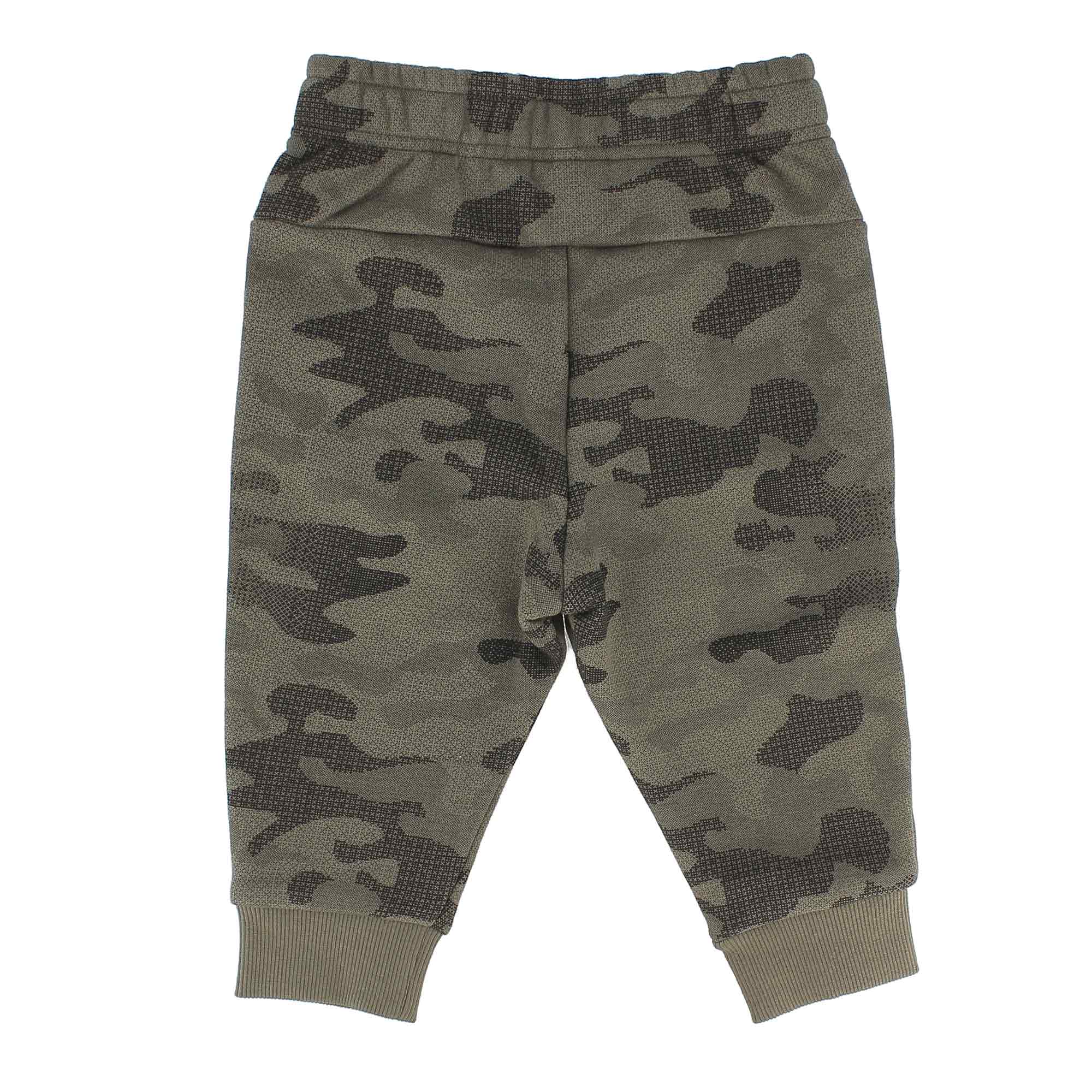 Printed fleece trousers with elasticated waist and front laces. Side pockets with rubberized zip. Ribbed bottom.