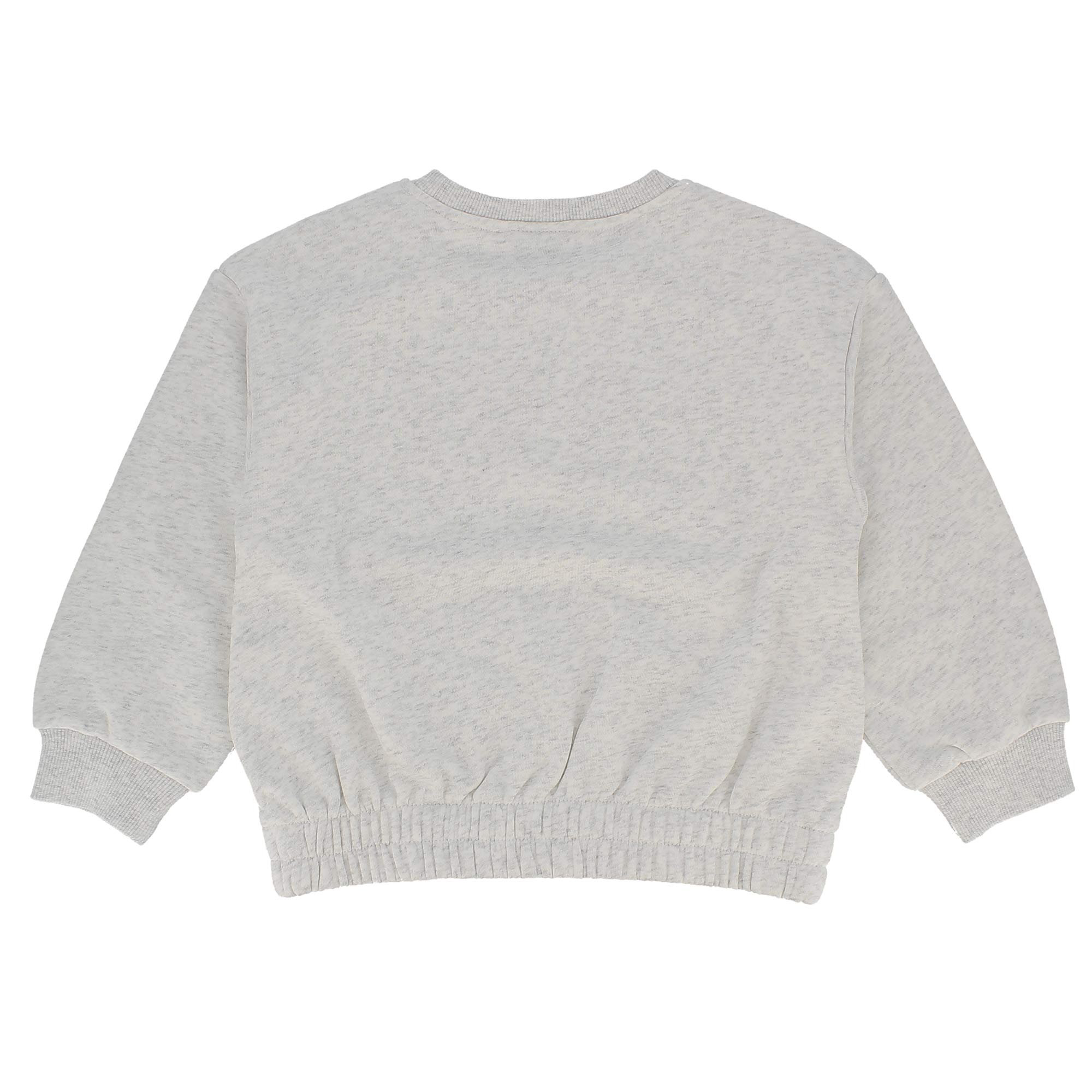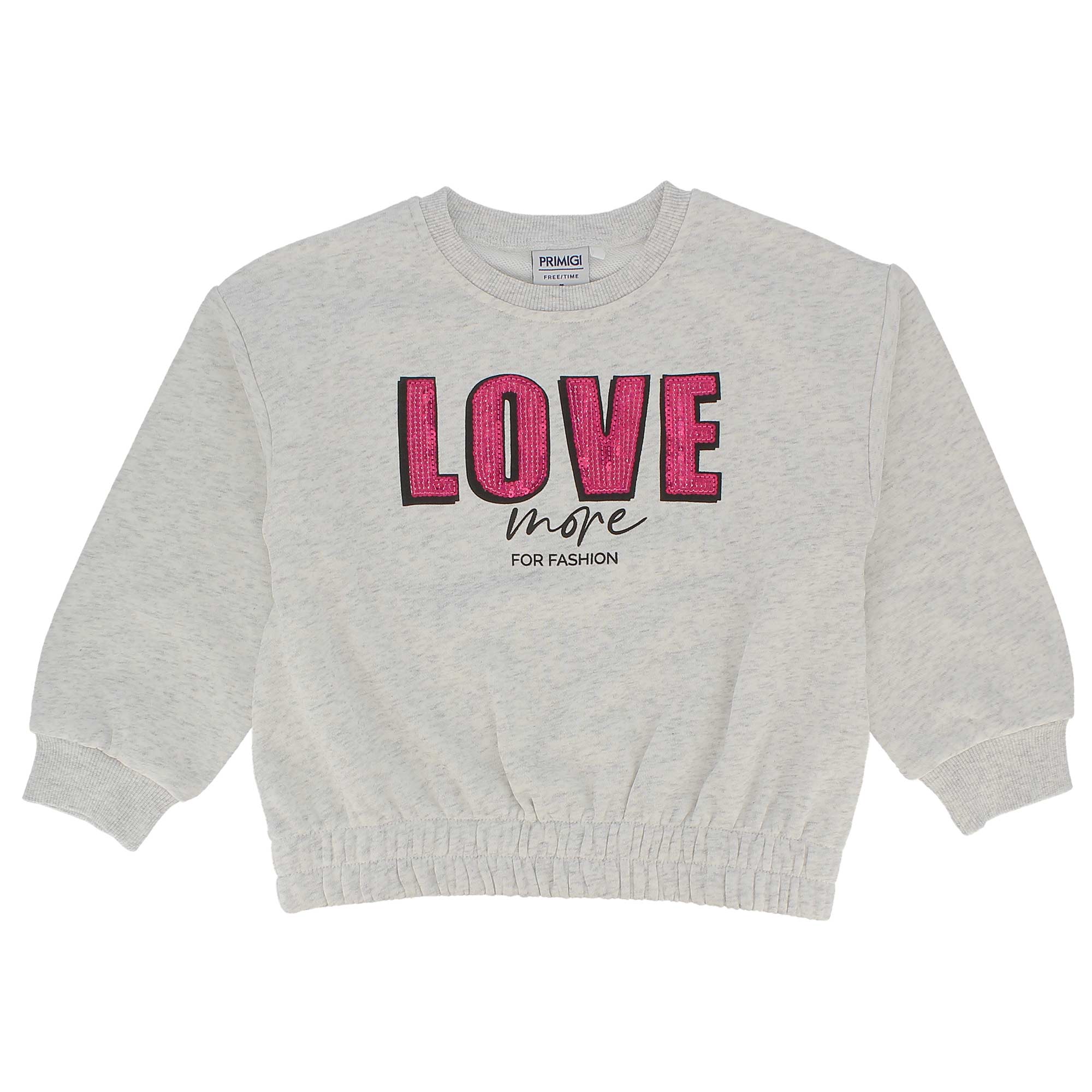 Long-sleeved crew-neck sweatshirt. Print with sequin embroidery on the front and bottom with curled elastic.