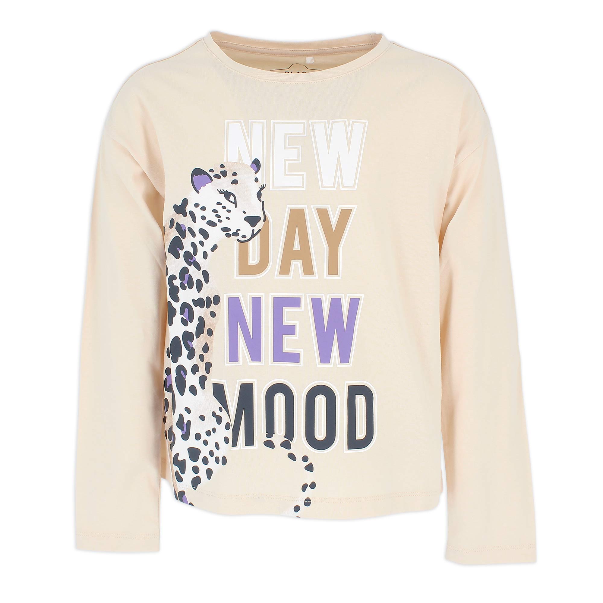 Oversized jersey t-shirt, crew-neck, long-sleeved. Print with writing on the front.