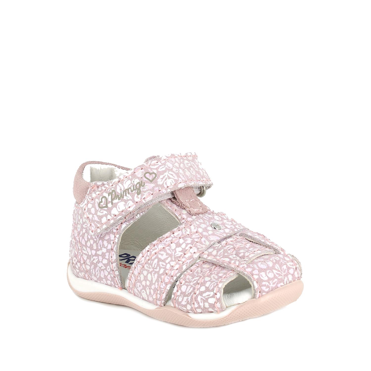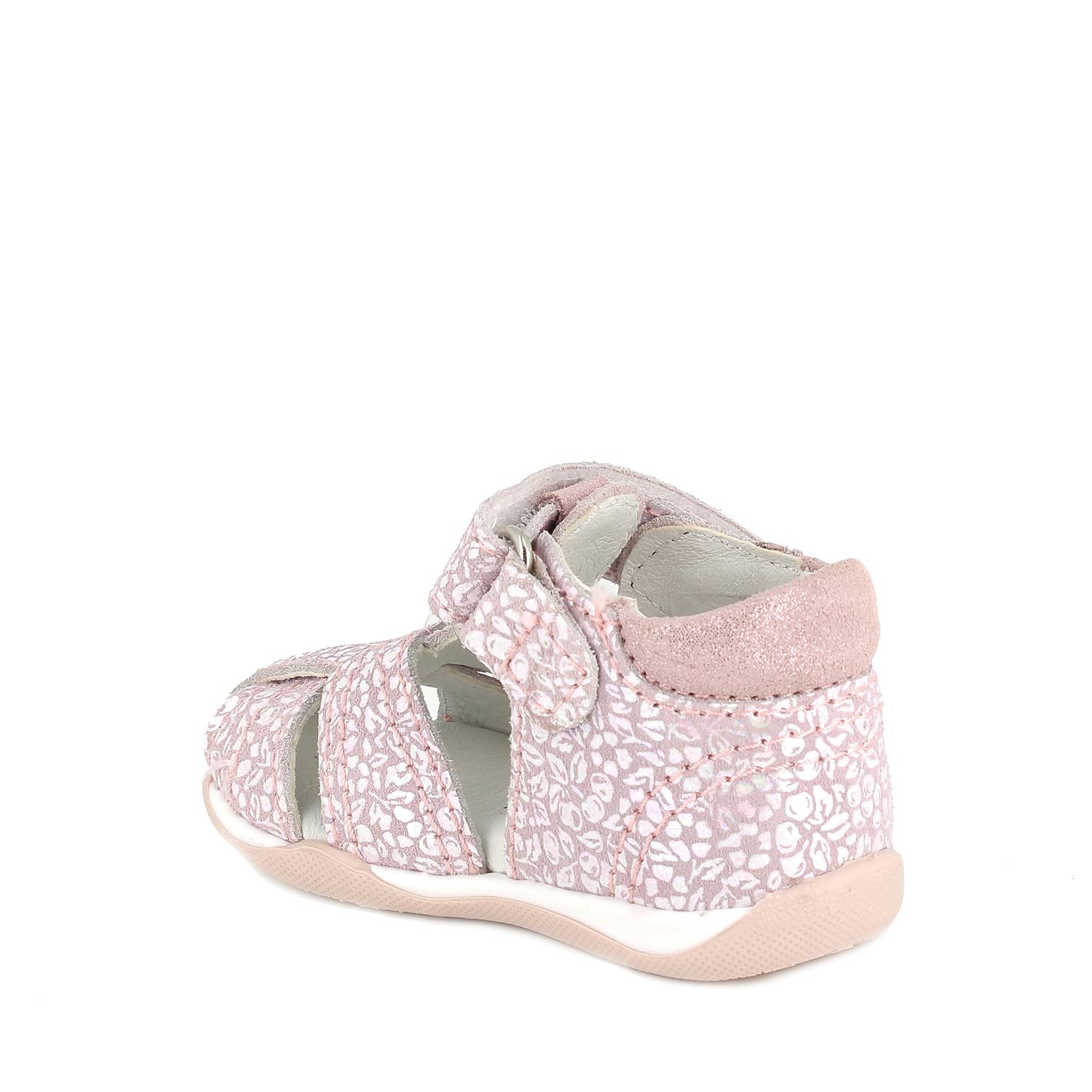 Sandal in leather for girl pink iridescent