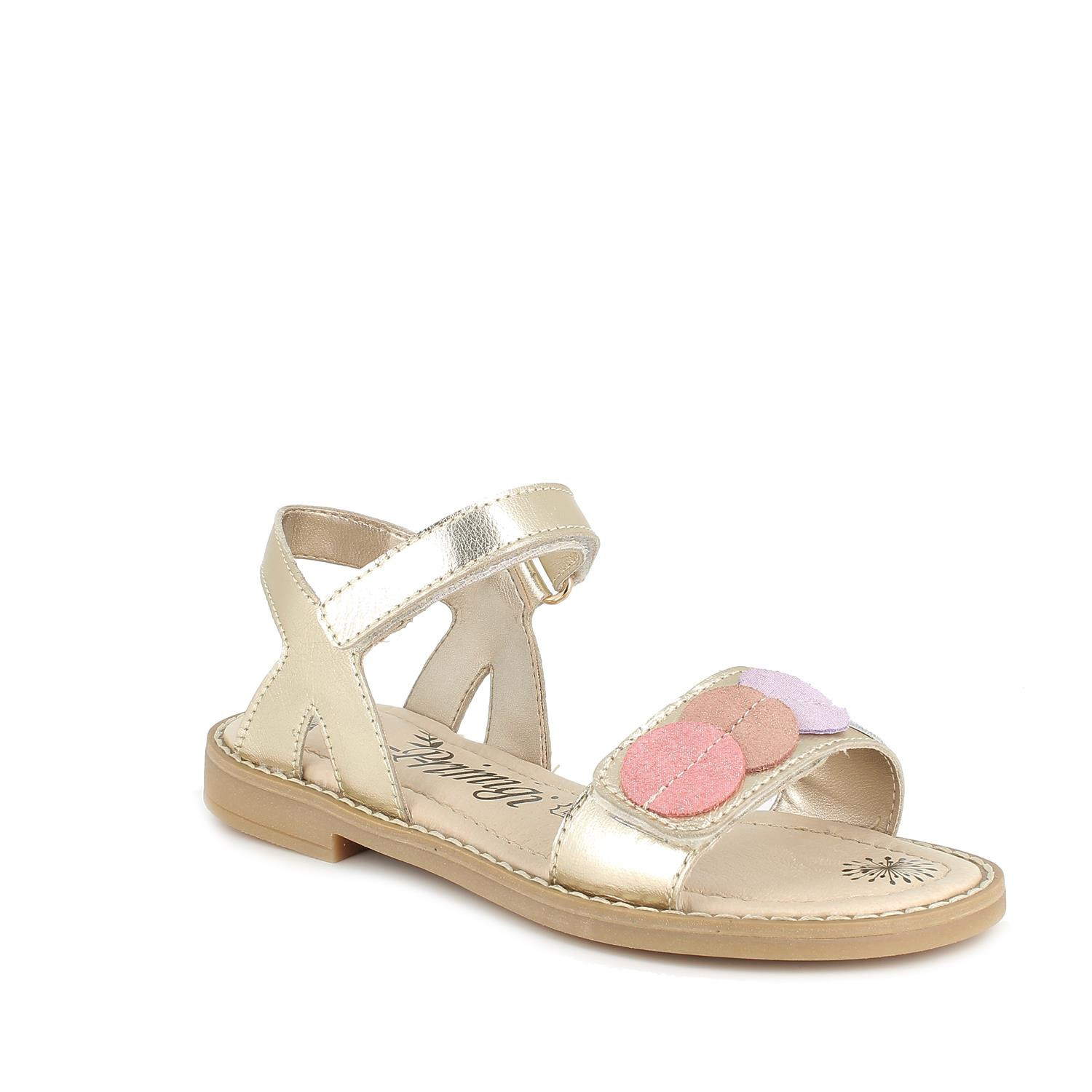Sandal in leather for girl platinum