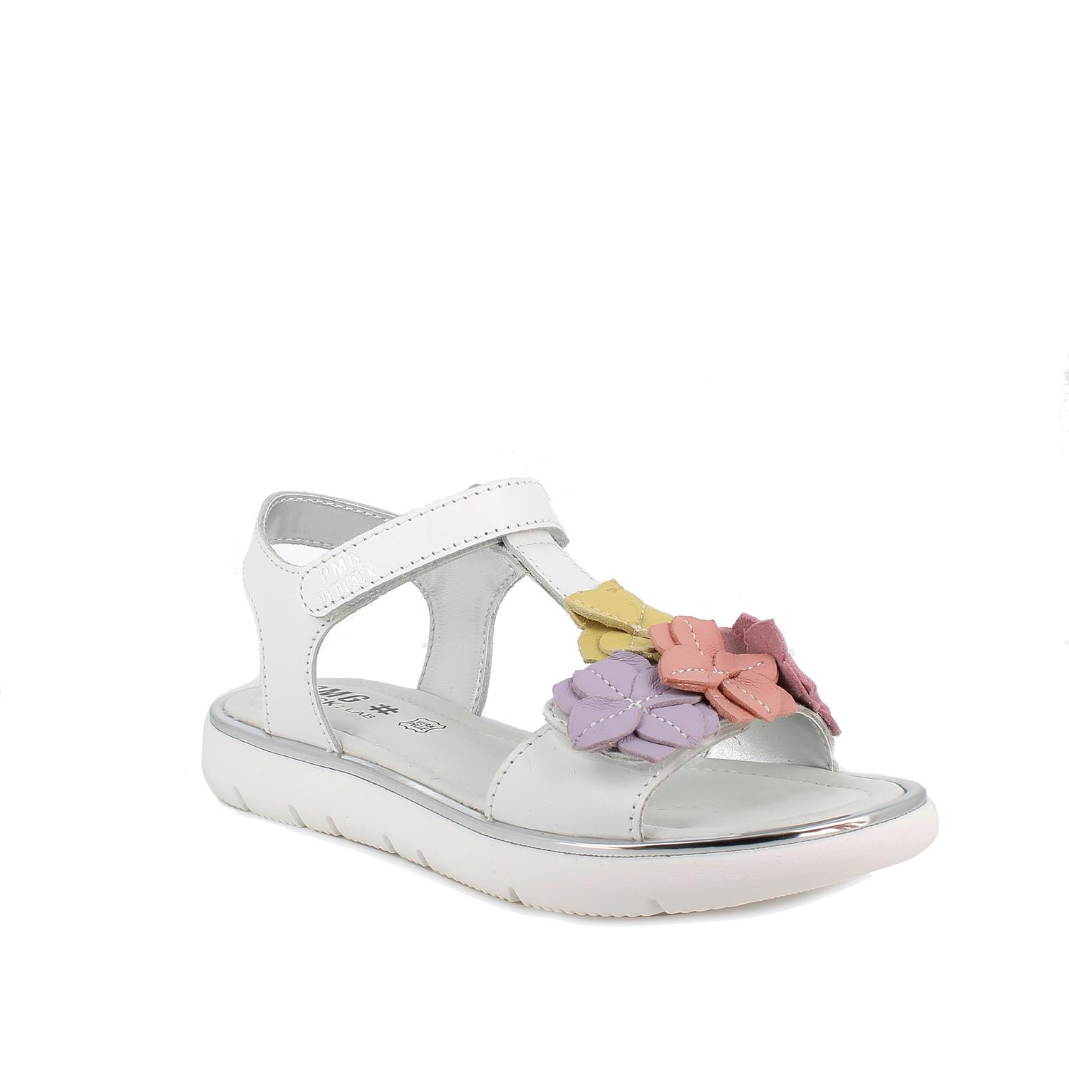 Girls' sandals with double adjustment that lend themselves to more refined combinations but also to complete everyday outfits. The rich floral motif gives an extra touch to this model in itself minimal. The sole is flat and sturdy and the step gains in stability. It is equipped with grooves on the tread that increase its flexibility. The leather insole promotes breathability keeping the foot dry throughout the day.