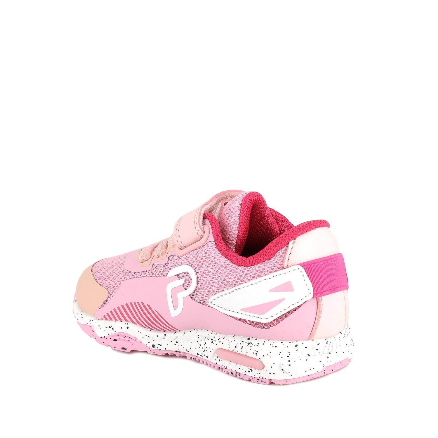 First steps sneakers with active-inspired lights. Made of technical fabric both outside and internally, they have protective elements located in the rubbing points. The padding around the ankle gently protects the foot and supports it properly. The sole is very light and the tread design is designed to give greater traction and facilitate movement. The anatomical insole is removable and covered in leather to ensure breathability and hygiene.