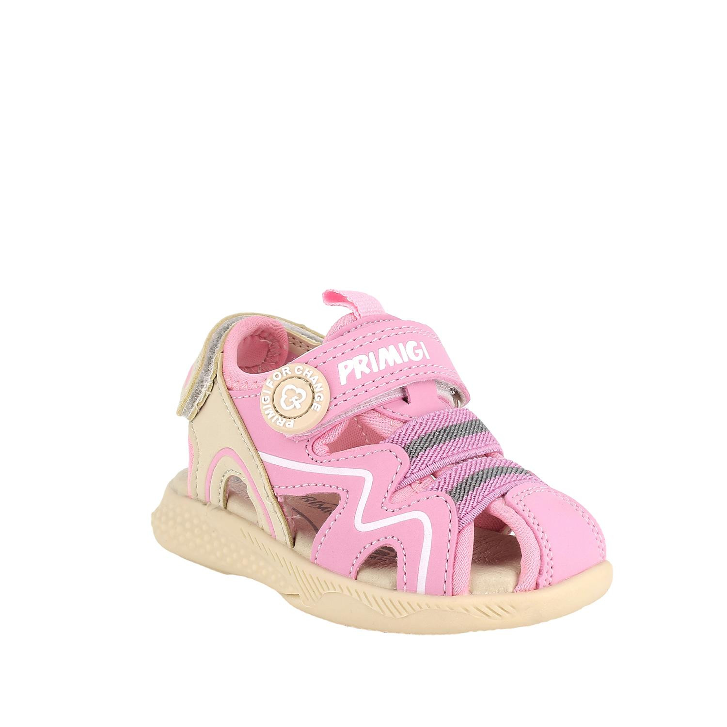 Sustainable footwear for its first steps. These sports sandals from the Primigi For Change collection are mainly made with recycled materials and/or low environmental impact. They have all the usual characteristics of functionality and attention to the development of the foot but also pay particular attention to the environment.