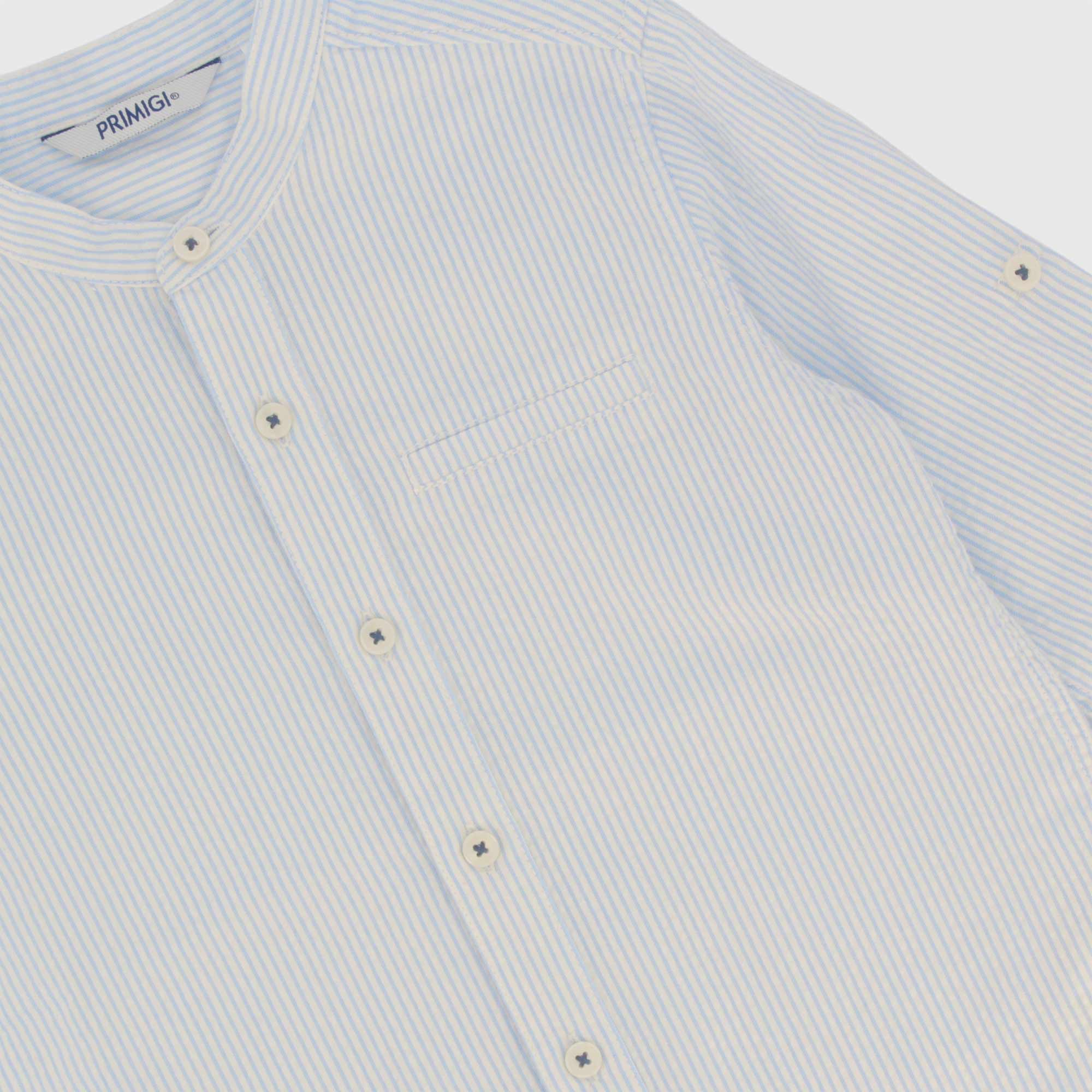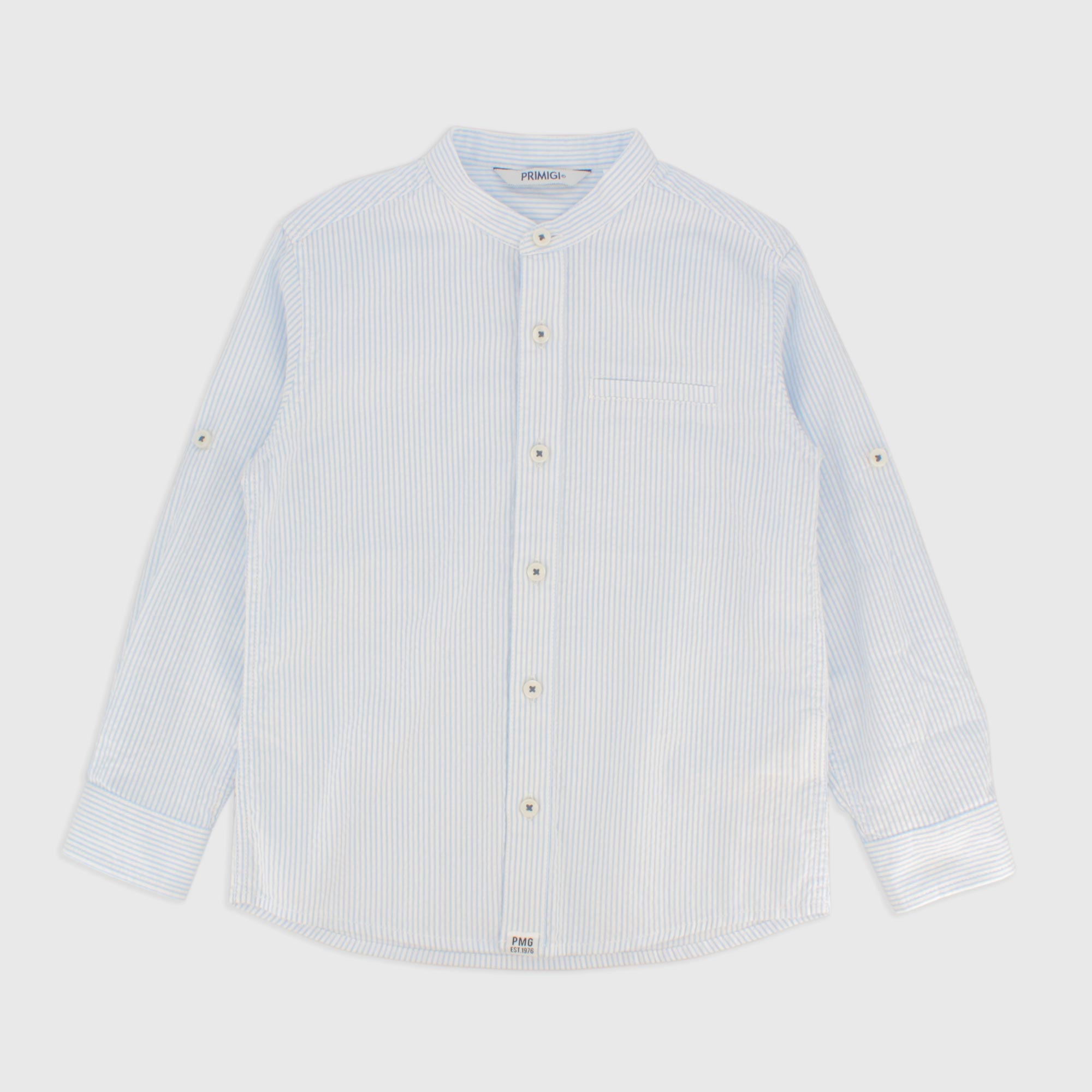 Shirt with Korean collar, long sleeves. Front button closure. Small pocket on the chest.