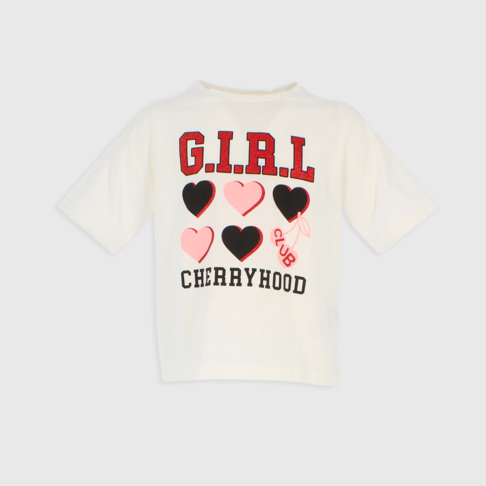 Jersey shirt, crew-neck, short sleeves. Print with lurex details on the front.