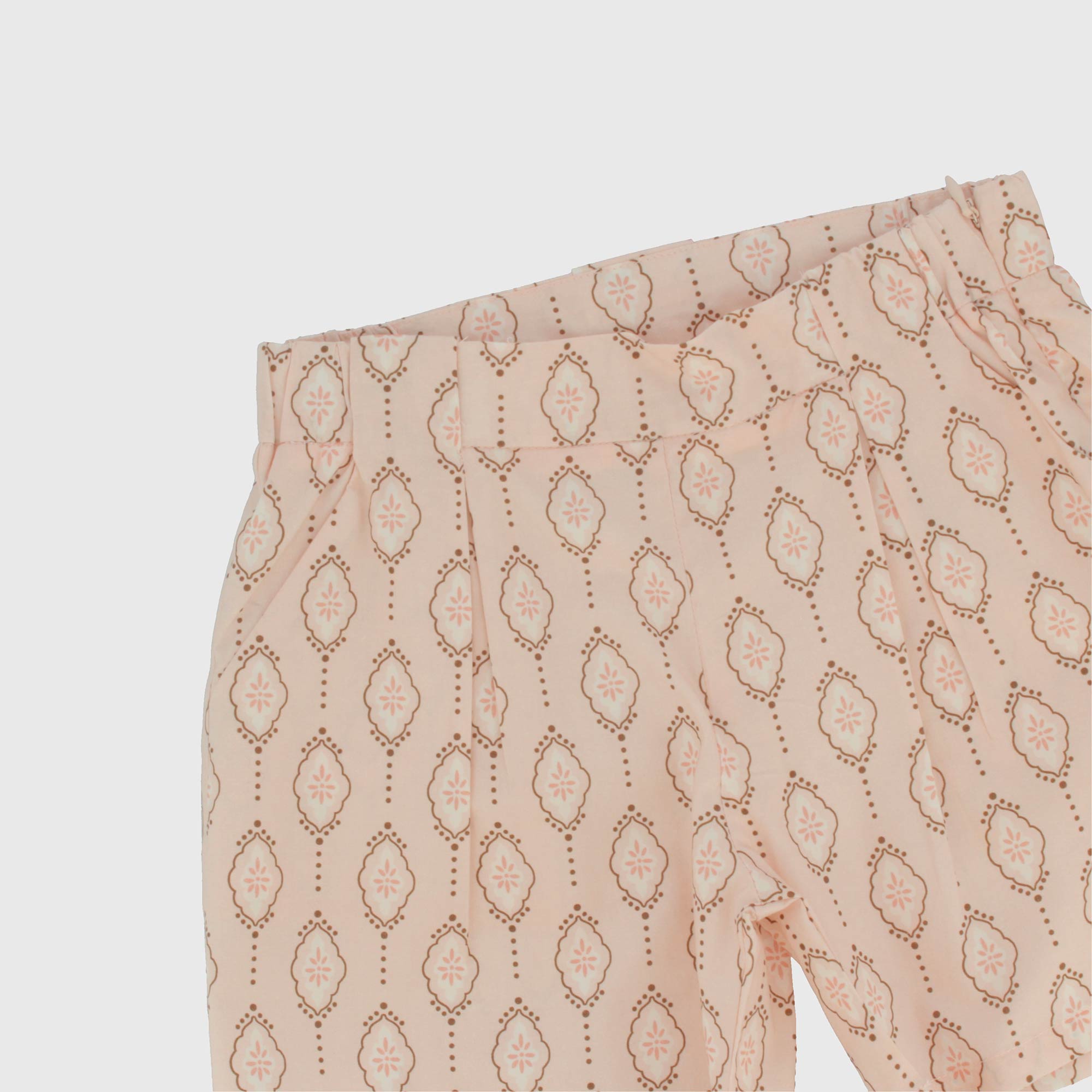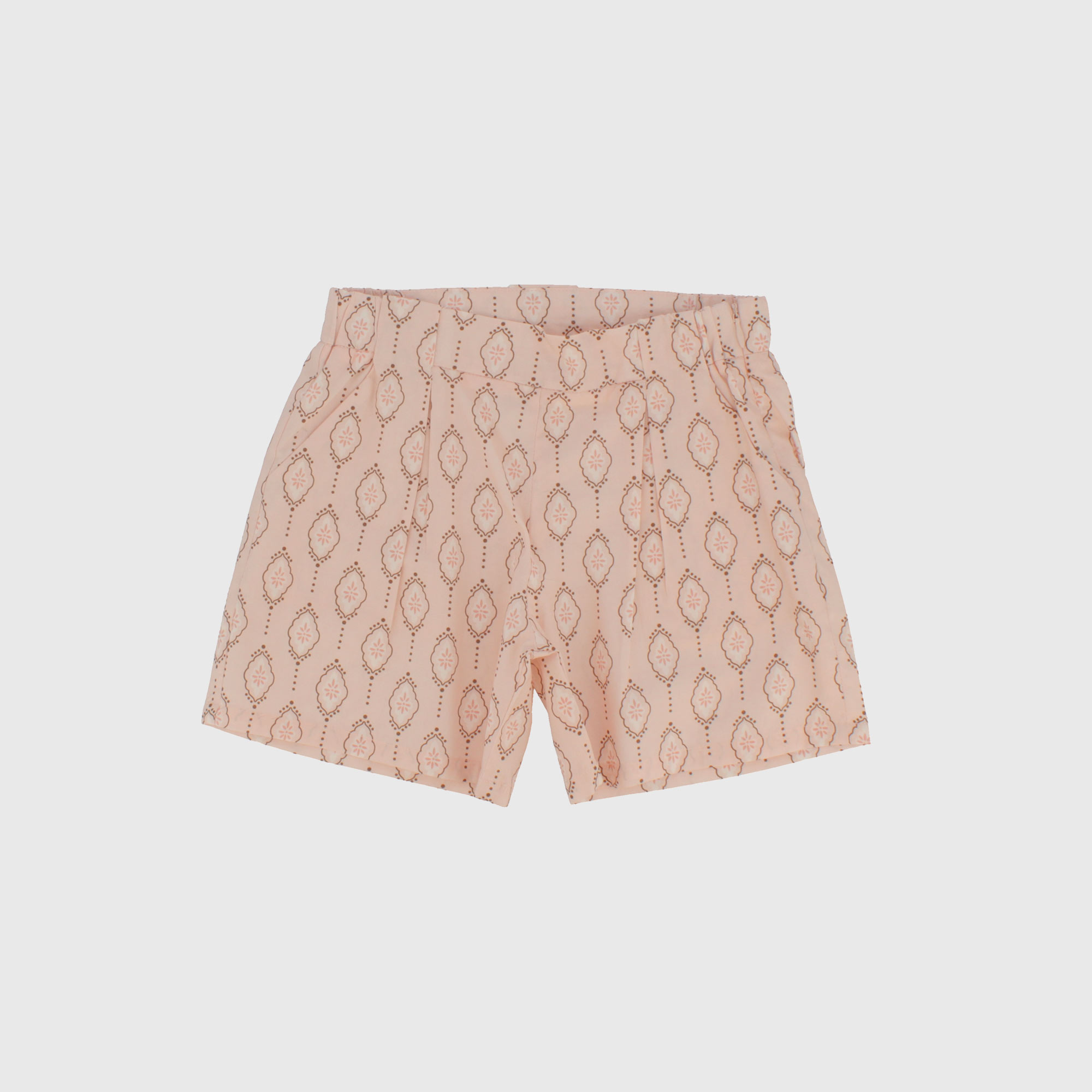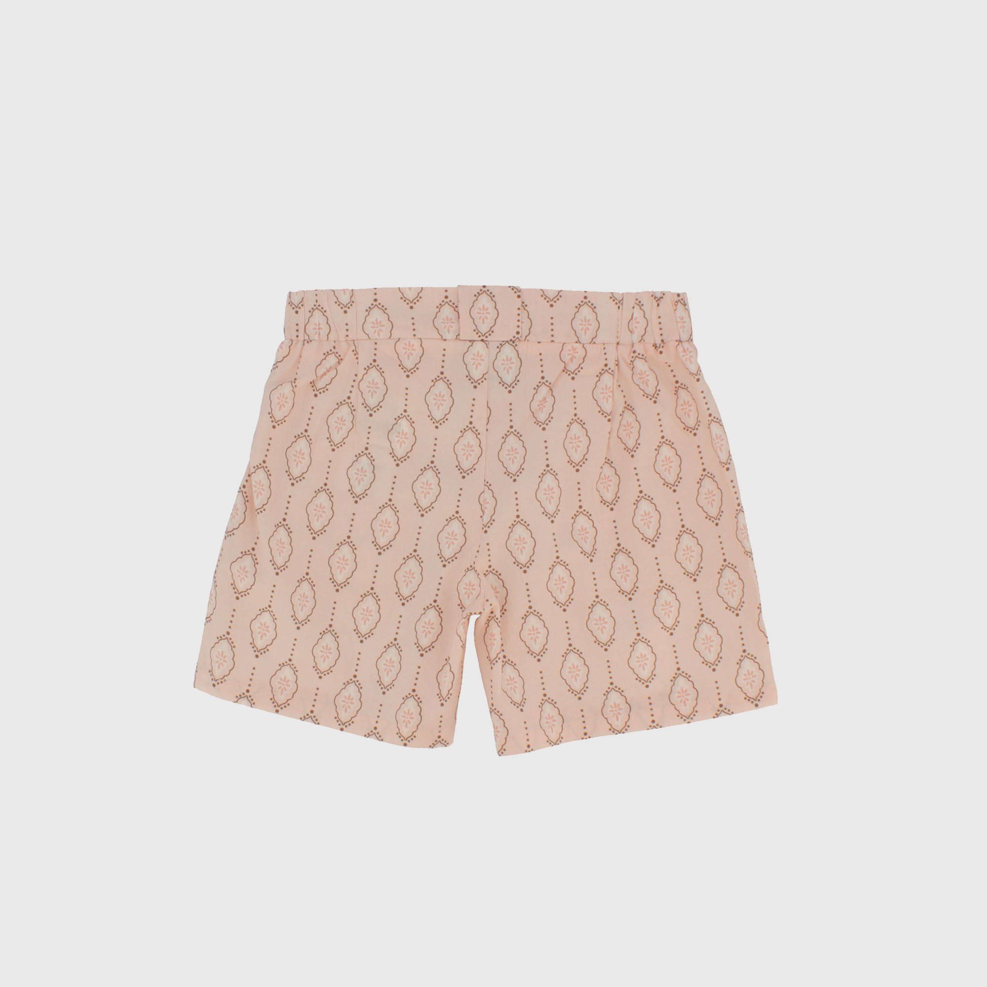 Printed cotton shorts with elasticated waist. Side zip closure. Side pockets.