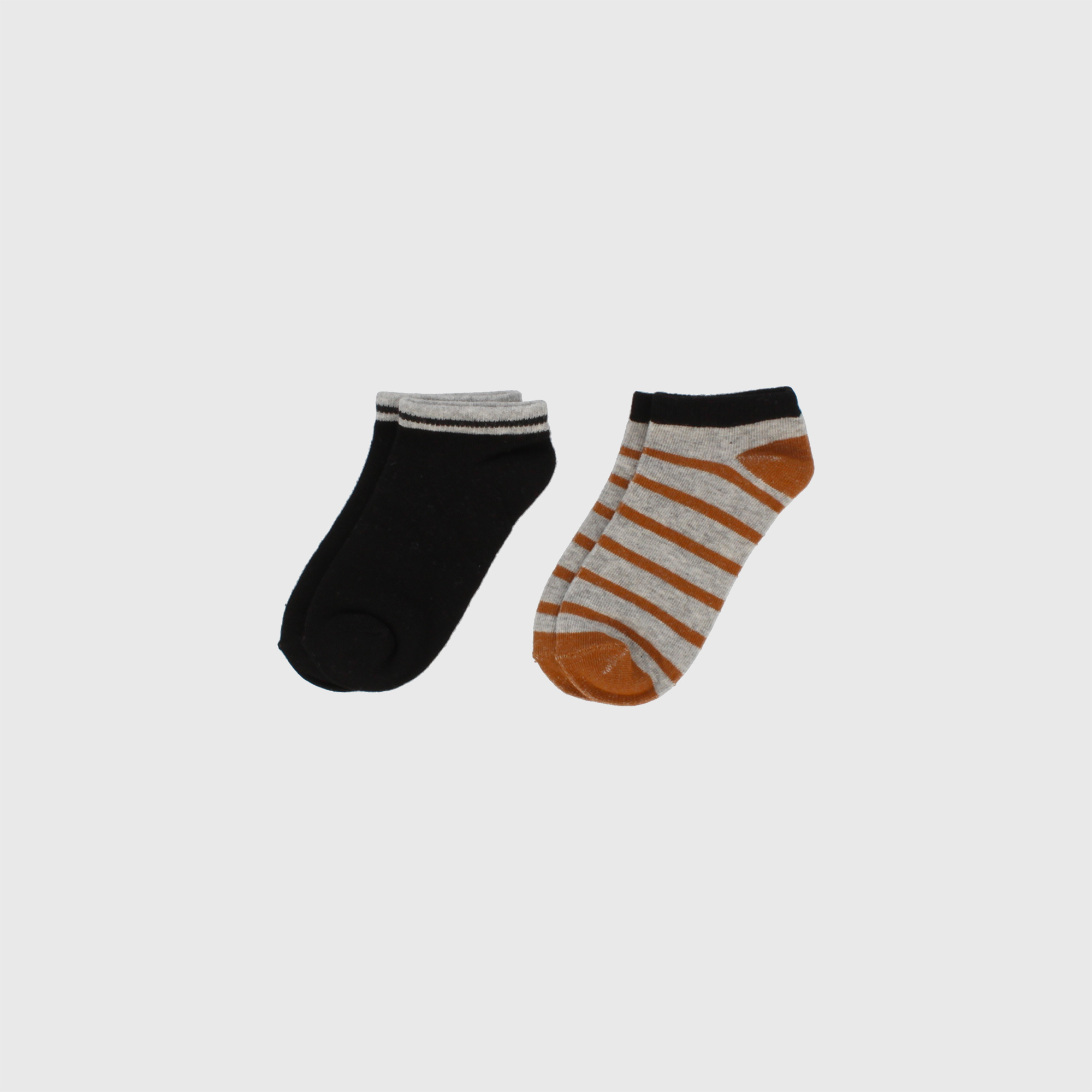 Pack consisting of two pairs of socks. One with stripes and one solid color with contrasting profile. Elasticated edges.
