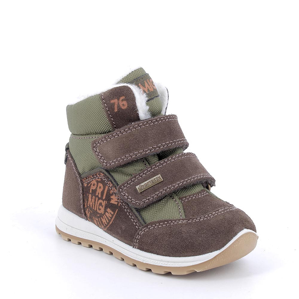 These GORE-TEX wool lined first steps boots are a favorite in winter for outdoor use. The sporty look allows you to easily match them to everything. The localized padding protects against shocks and impacts and best supports the ankles of the little ones. Boots easy to wear and adjust thanks to the double strap. The foot rests on a warm plantar that can be pulled out for greater hygiene.