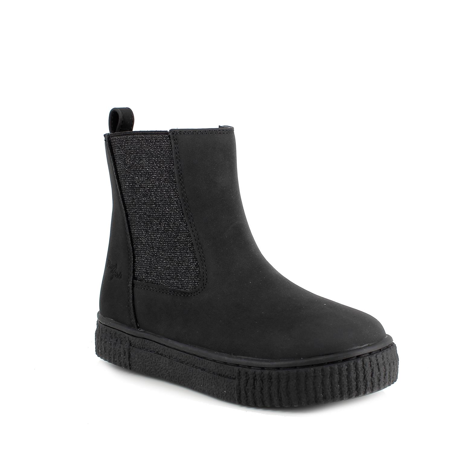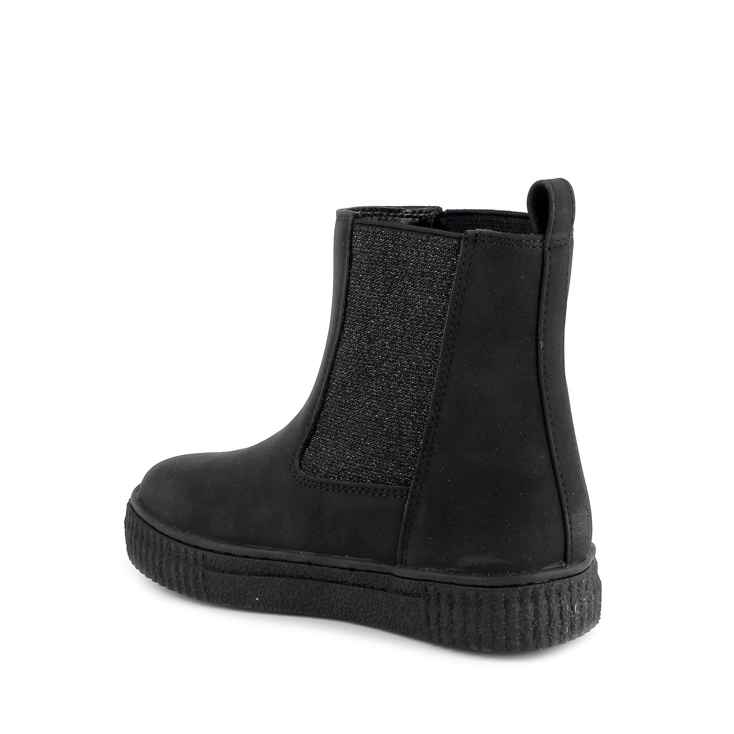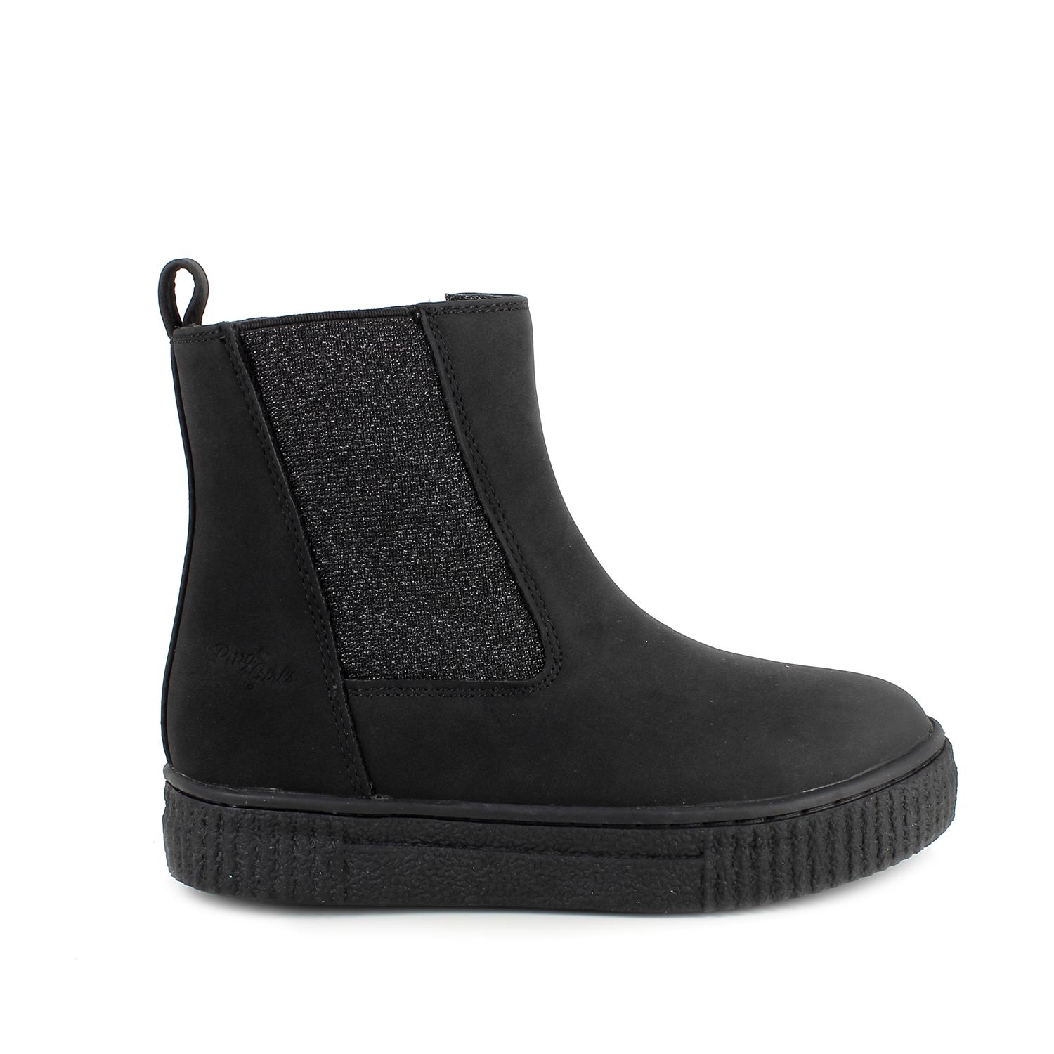 Girls' boots chelsea model with box sole. These ankle boots have been interpreted in a contemporary key and the elastic part also wraps around the ankle even rearwardly. They slip on and pull off like a slip-on in a practical and fast way helping themselves with the rear tie rod. They have a rather rounded shape at the tip to be more comfortable. The anatomical insole is removable and covered in leather to ensure breathability and hygiene.
