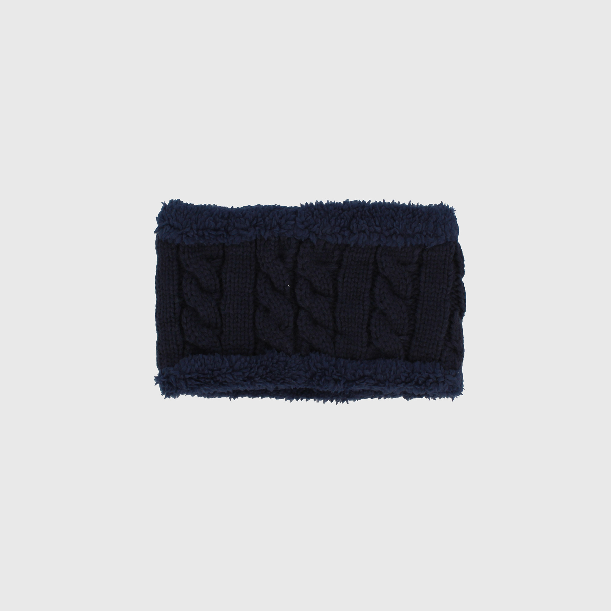 Neck warmer in soft solid color knit. Inner fleece lining with fur effect.