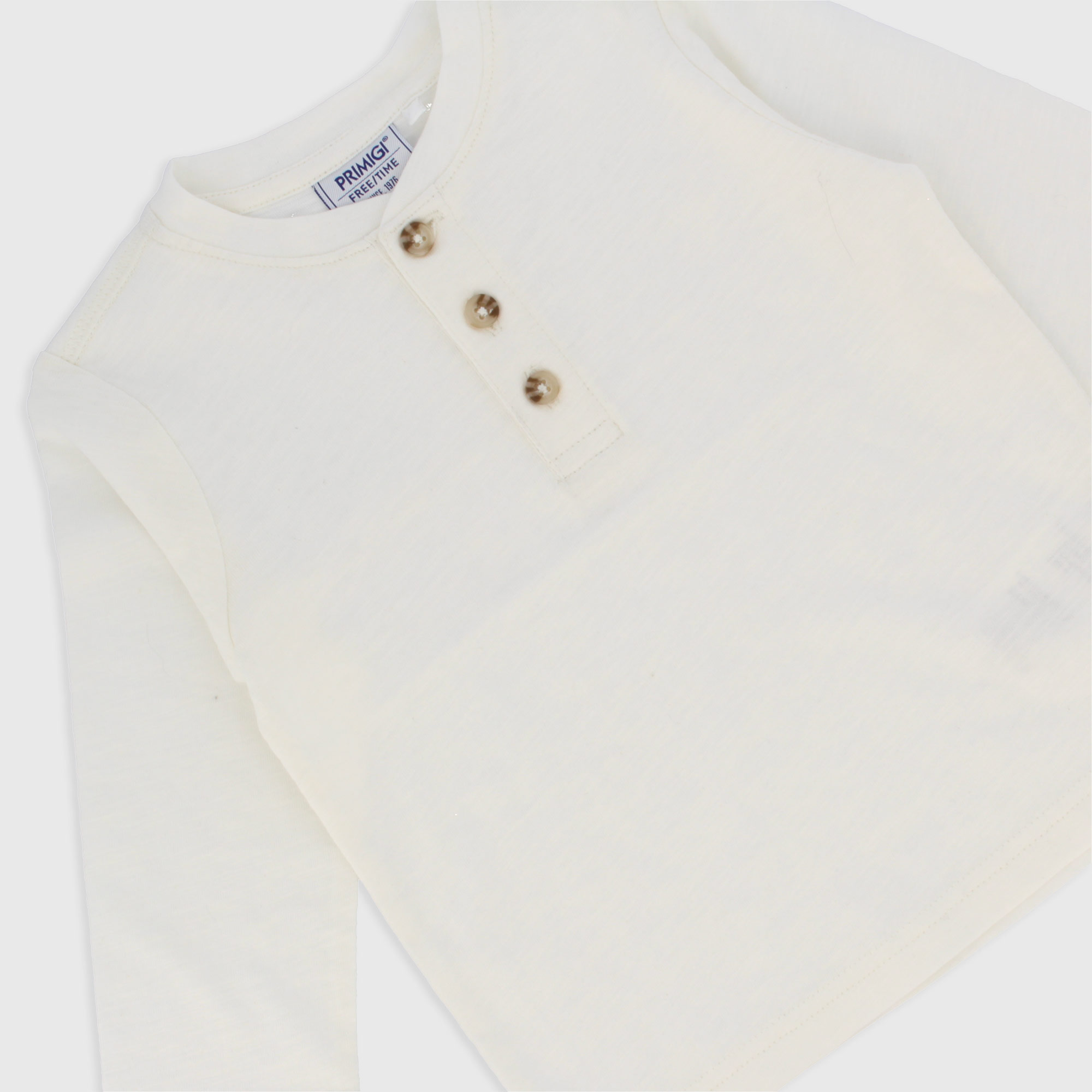 Henley t-shirt in jersey with long sleeves and round neck. Button on the neckline.