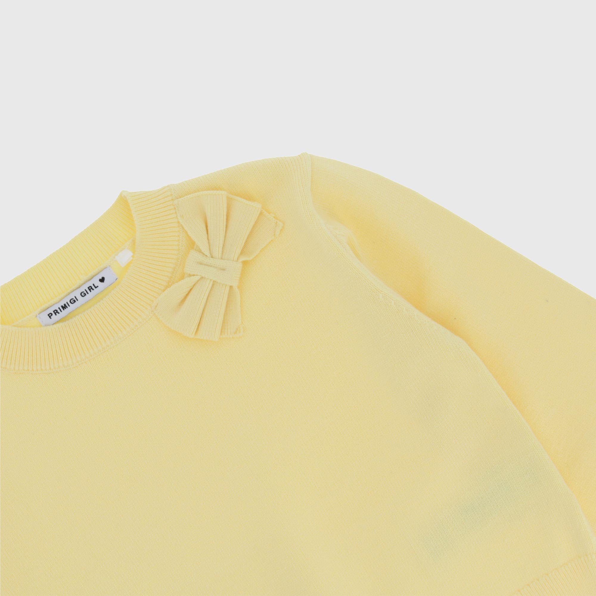 Knitted pullover, with round-neck, long sleeves. Knitted bow applied.