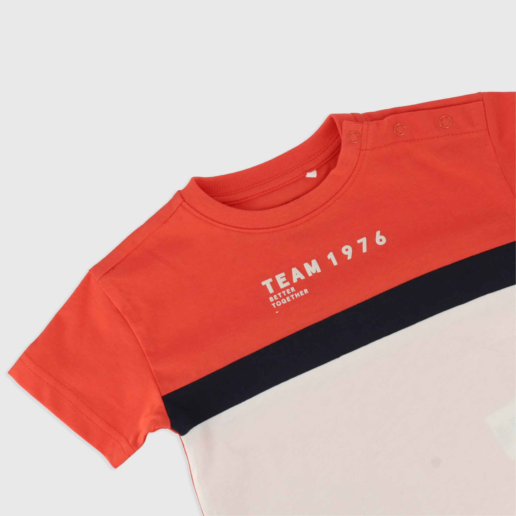 T-shirt in jersey, round-neck, with long sleeves. Automatic buttons on the shoulder. Printing high definition on the front.