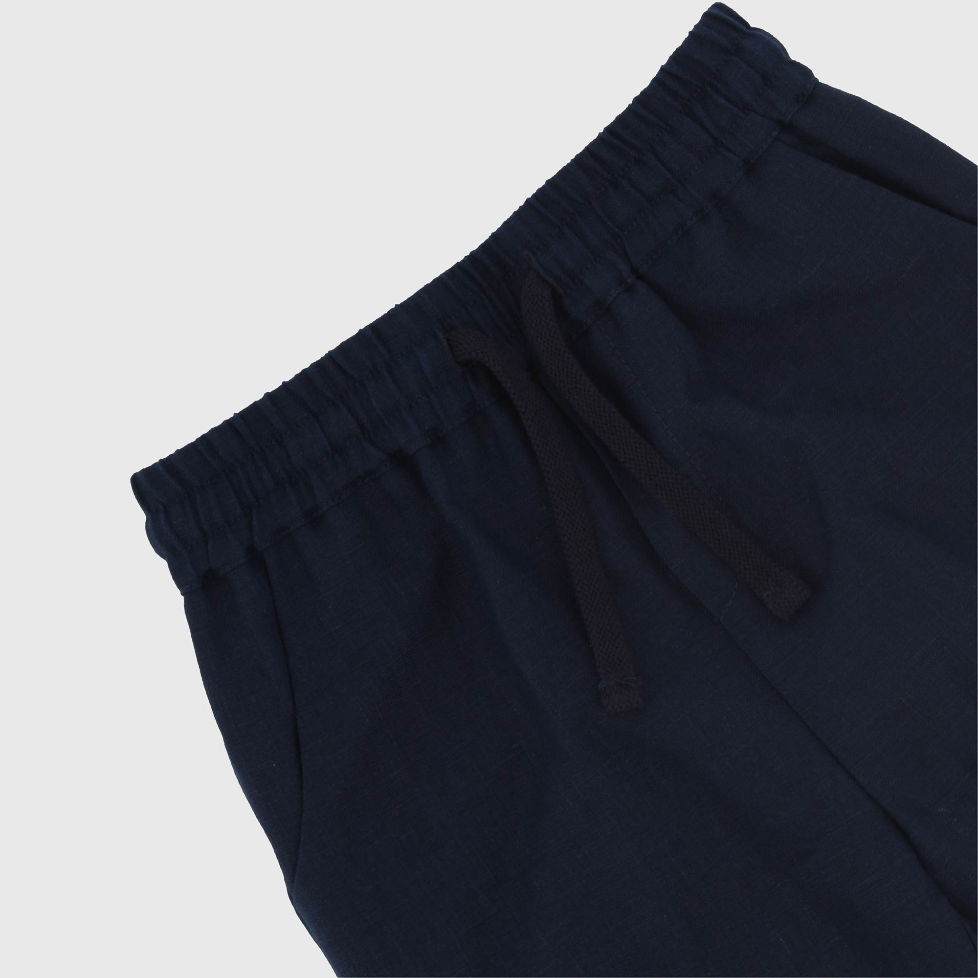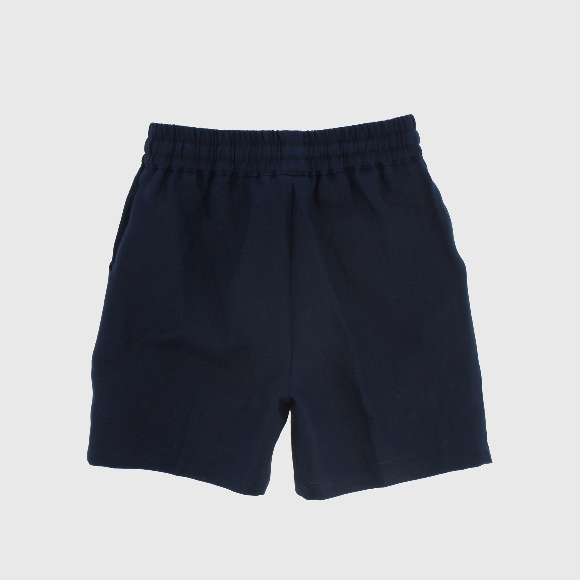 Bermuda in linen with elastic waist and front laces. French pockets.