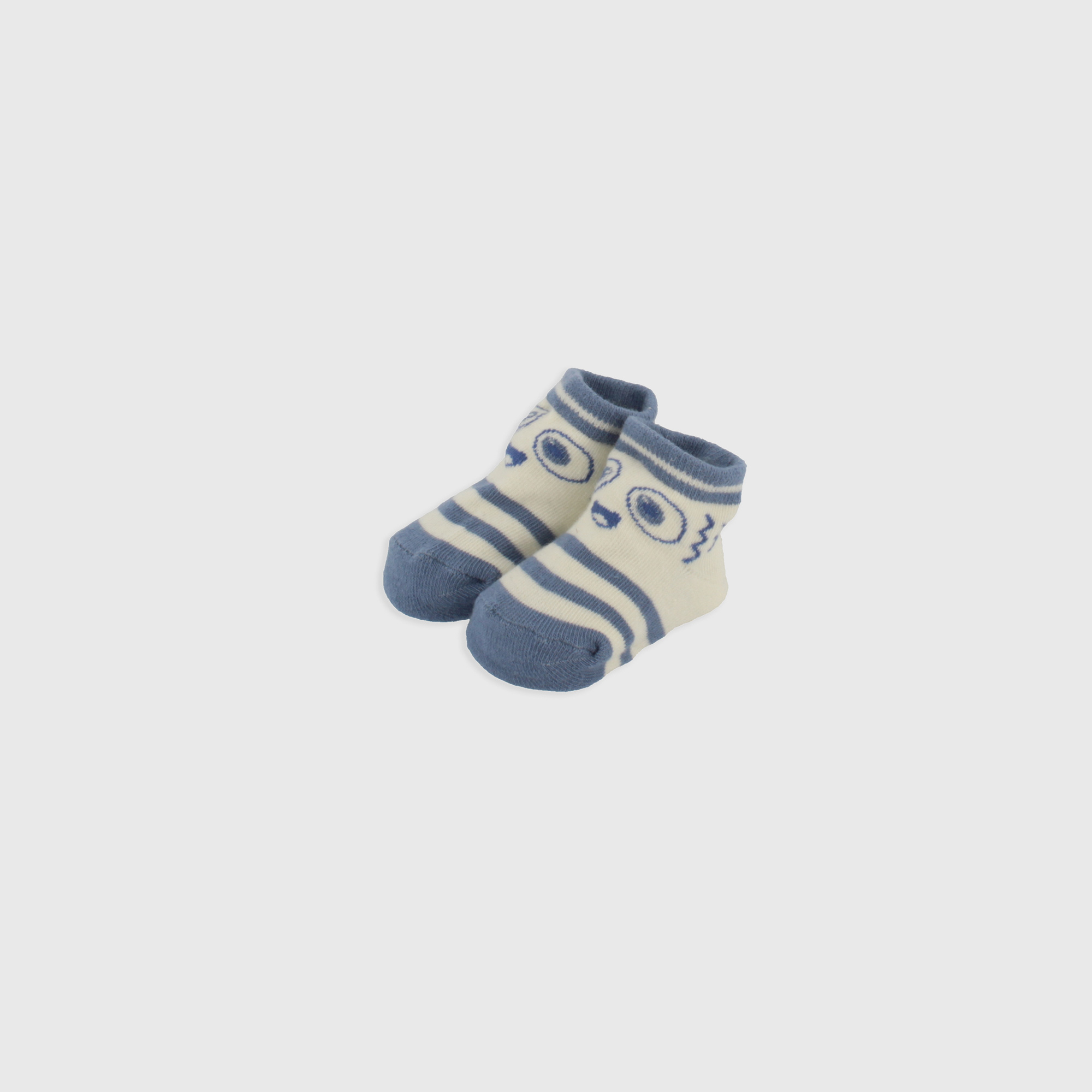 Socks for newborn with face theme, with anti-slip rubber patches. Elastic edge.