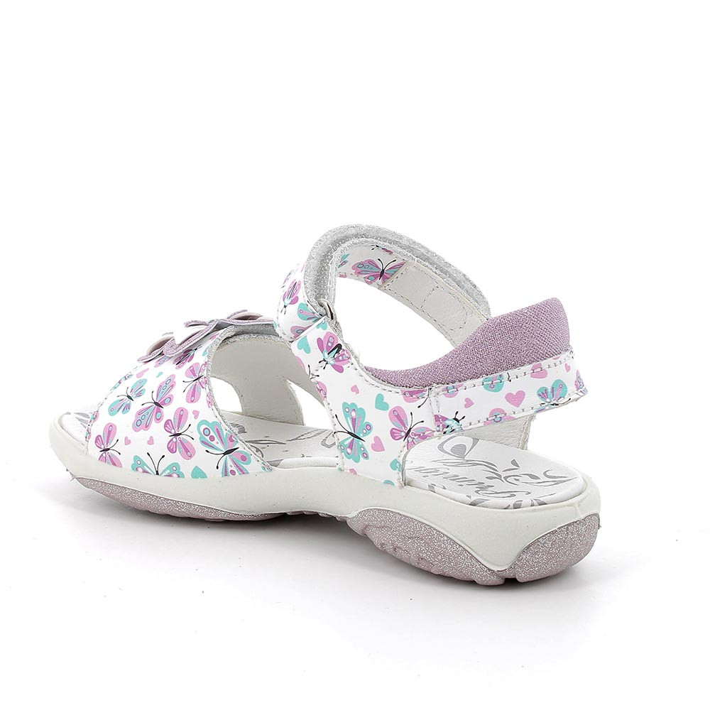 Girls' sandals with applied flower, suitable for all informal occasions and easy to combine with summer looks, both in the city and on vacation. They are equipped with back padding that protects the ankle and makes it more pleasant to wear them for running and playing. The sole is slightly higher on the back and particularly light and flexible. These sandals are lined in leather and also the foot rests on a leather footbed that guarantees hygiene and breathability.