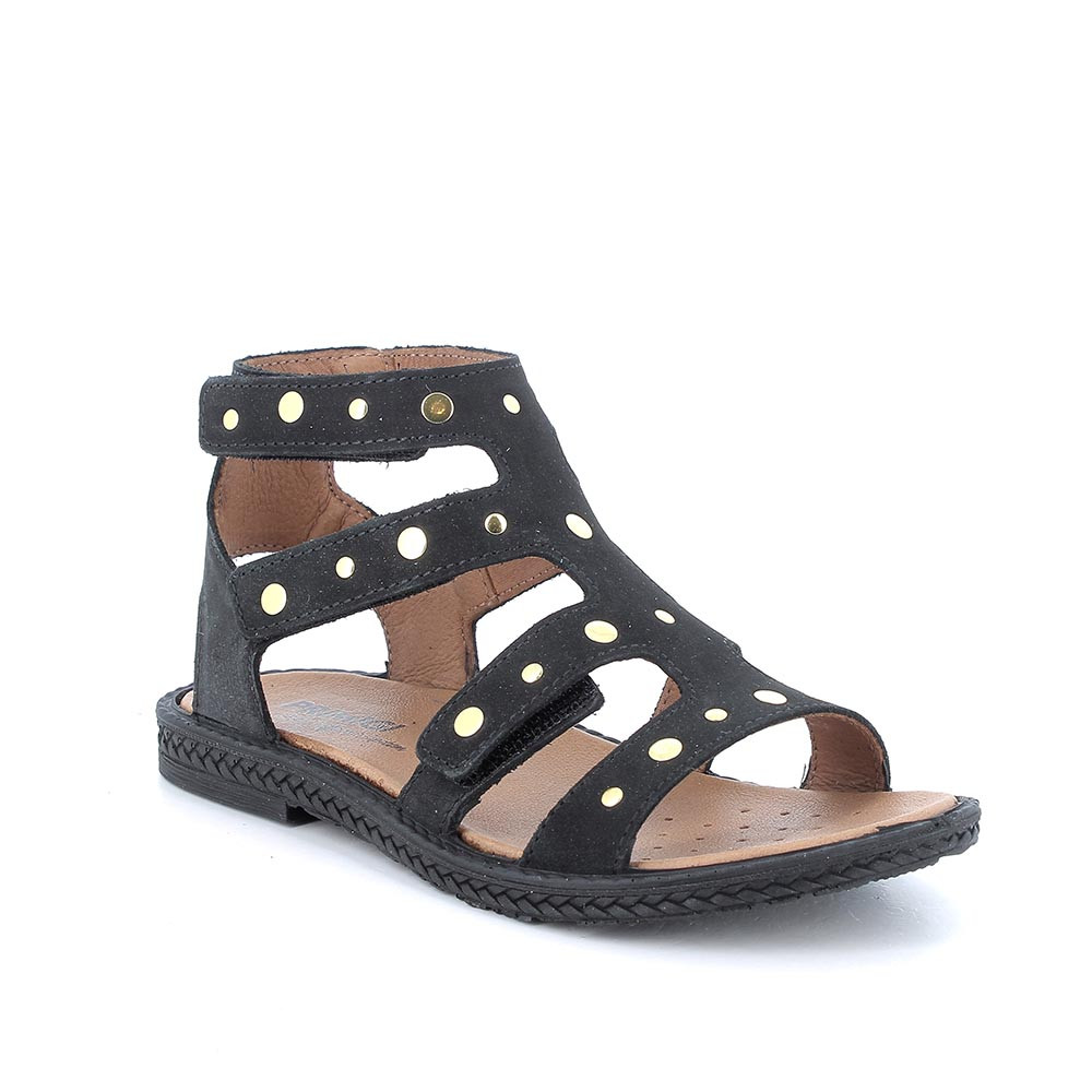 These gladiator style sandals for girls will be the favorite of the most fashion, in fact this model is always a favorite in summer. The straps, adjustable with velcro, are all decorated with precious metal studs. The sole with a small heel is thin and decorated with a woven pattern.