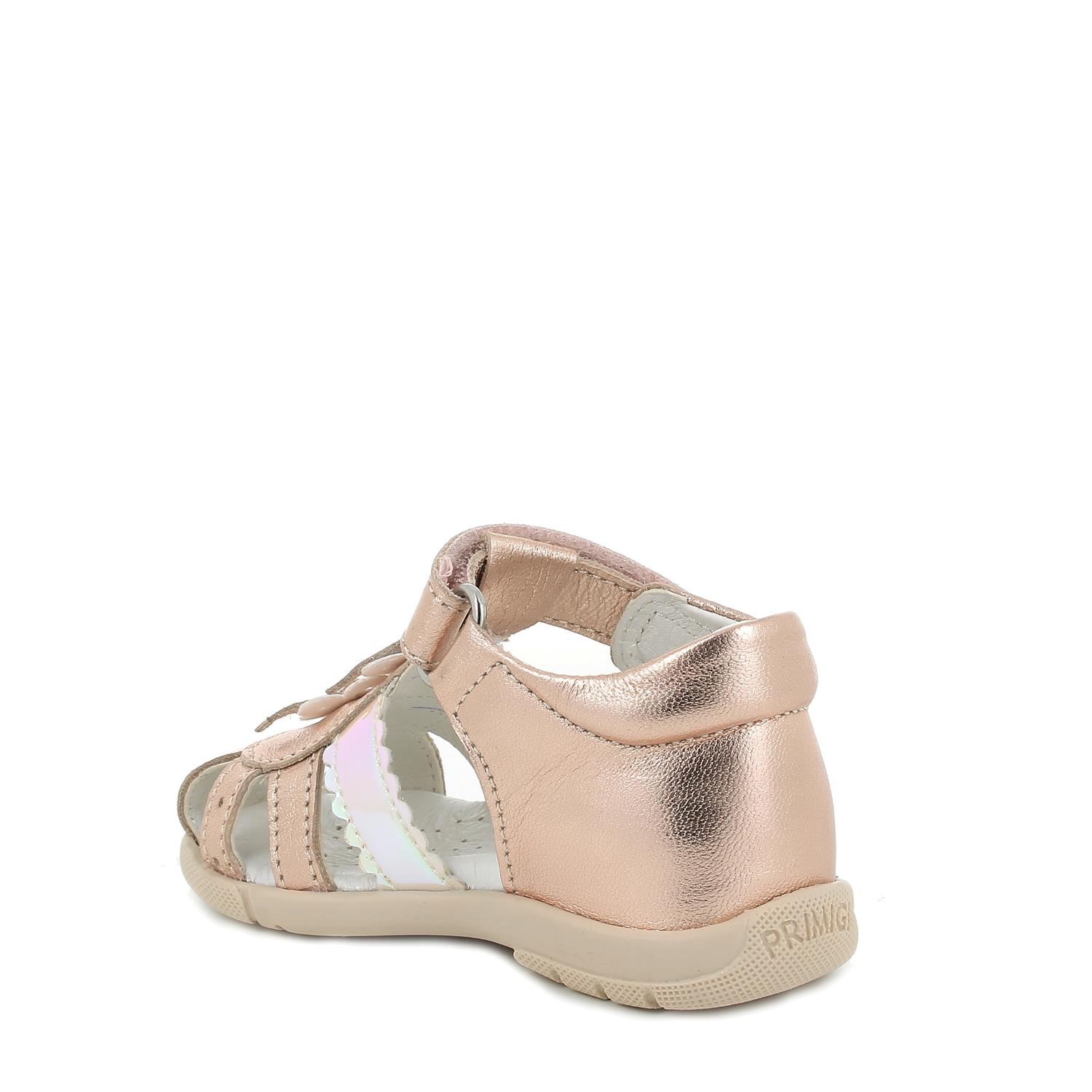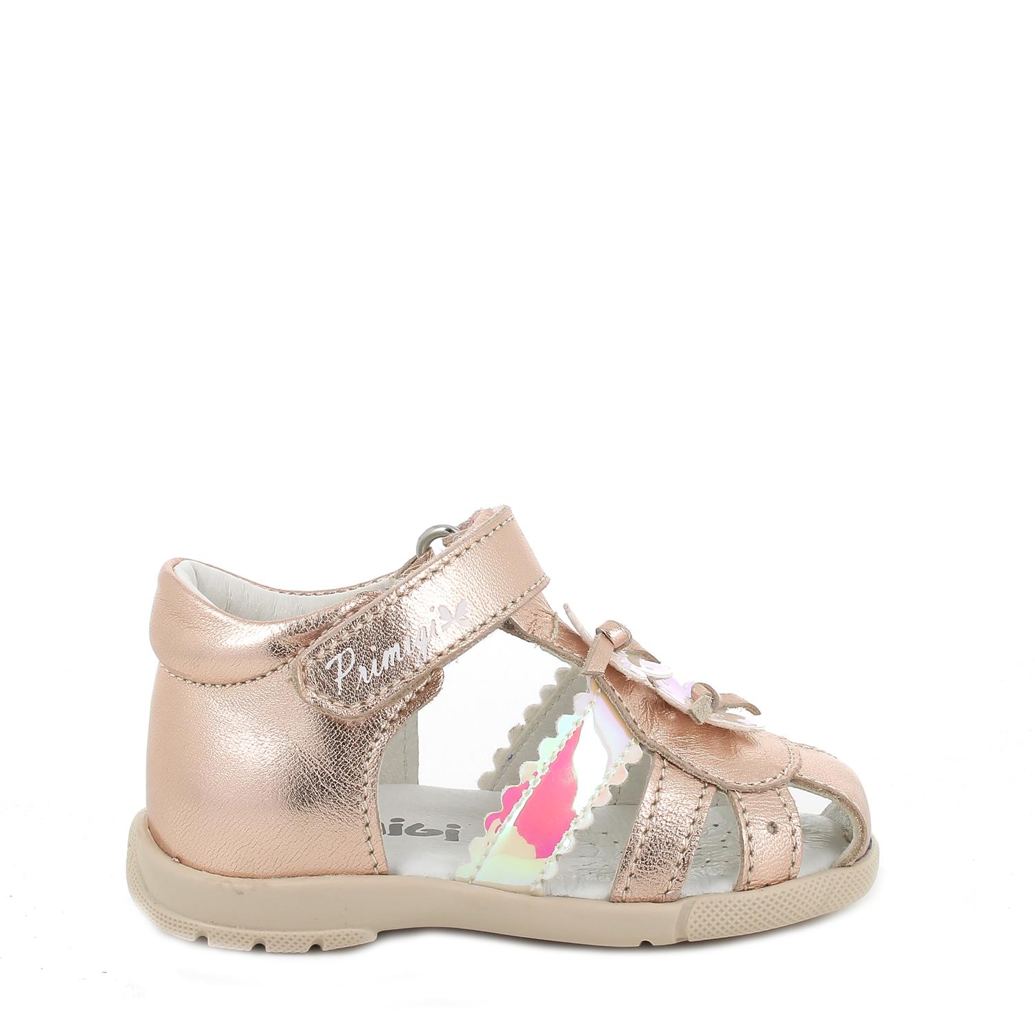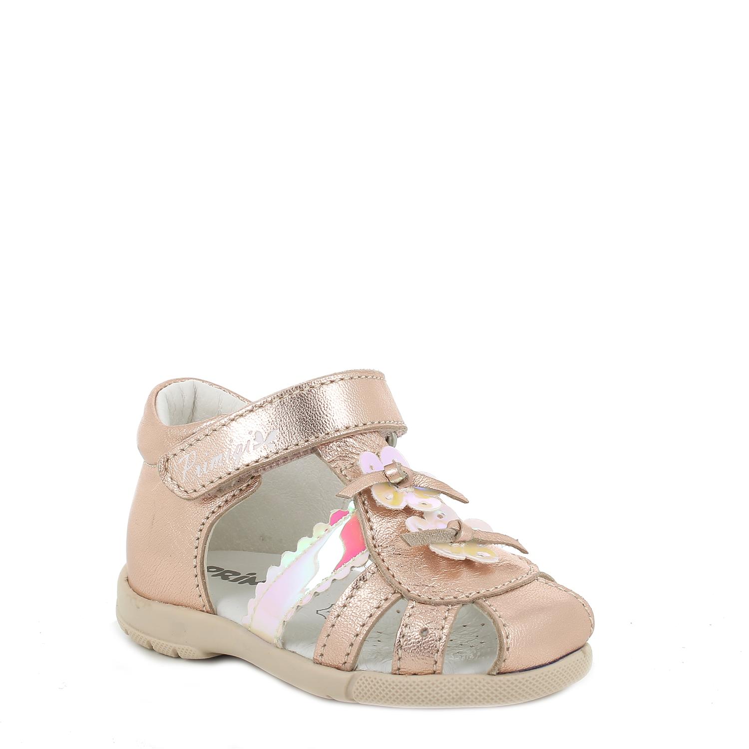 Girls' sandals first steps with closed toe. The quality of the materials and construction ensure a healthy environment and proper support in this delicate phase of growth. The design is refined and fresh. The chrome-free leather insole provides gentle support and the rounded toe sole leaves room for movement for the toes.