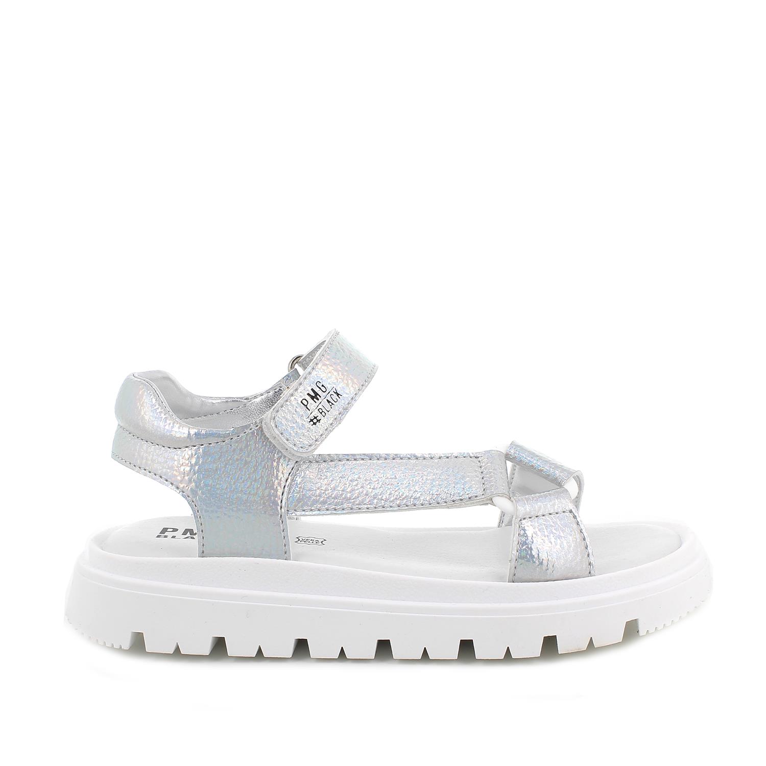 Sporty-inspired girls' sandals, made of lightweight materials. The back padding makes them particularly comfortable to wear. The sole is high, but light and flexible. The foot rests on a leather-covered insole.