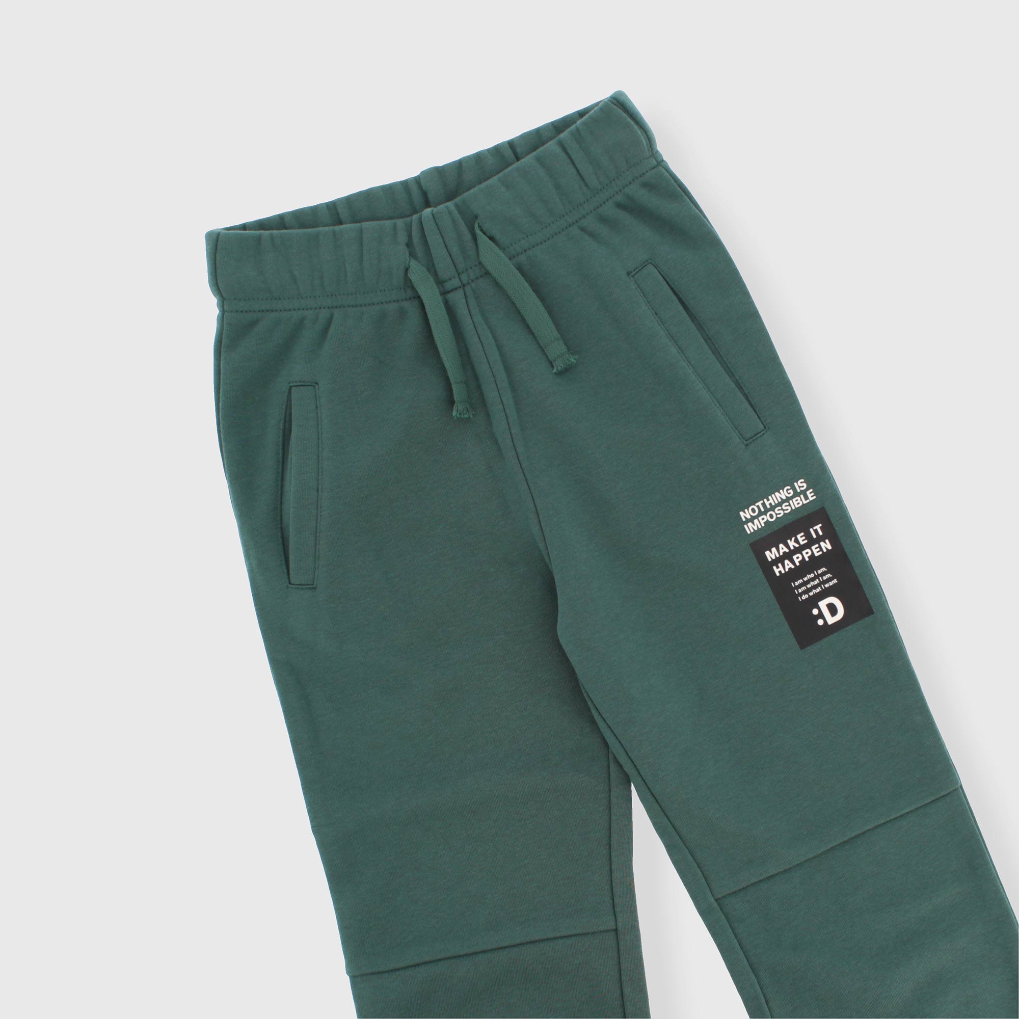 Fleece trousers with elasticated waist and front laces. Welt pockets on the front. Rubber effect print on the leg. Elastic bottom.