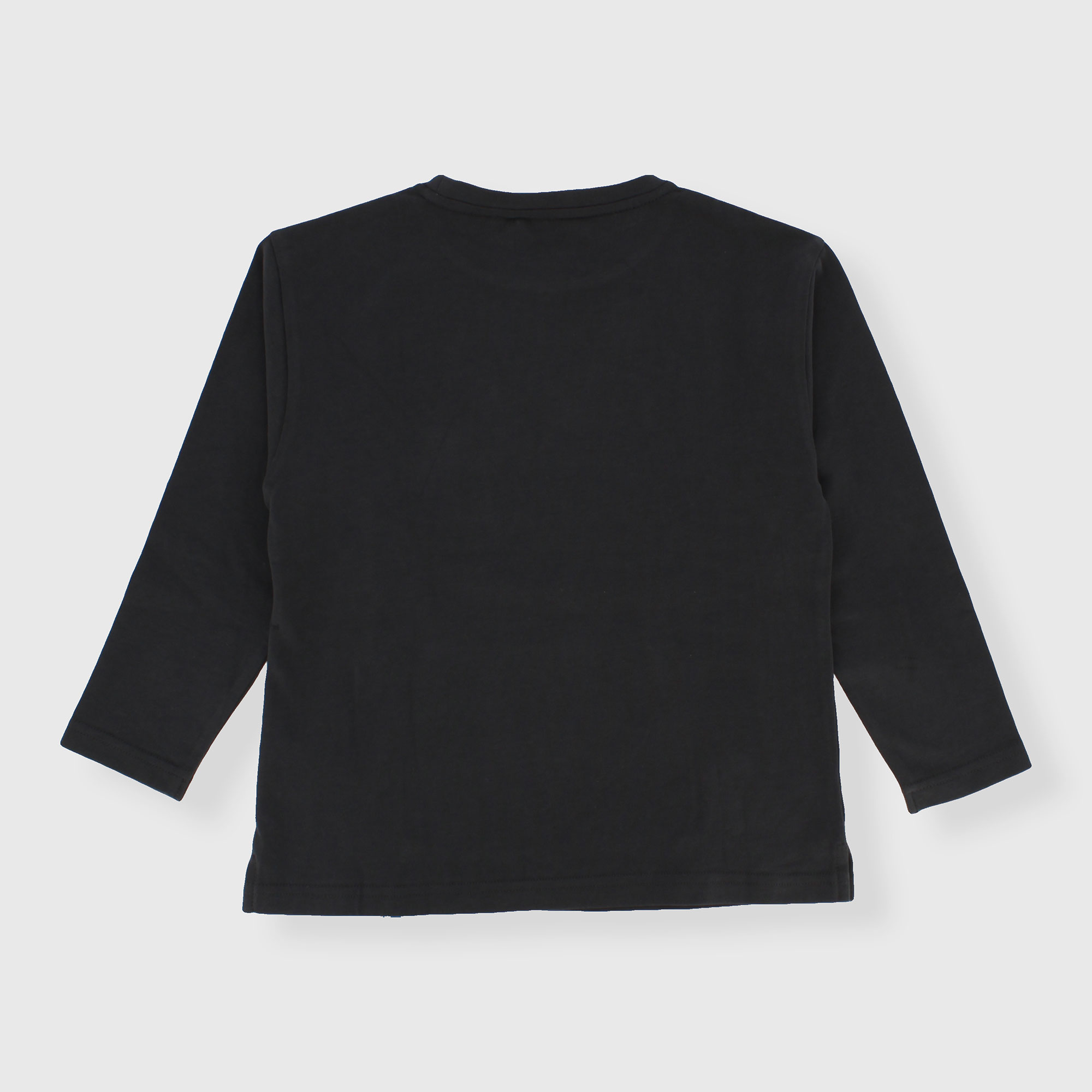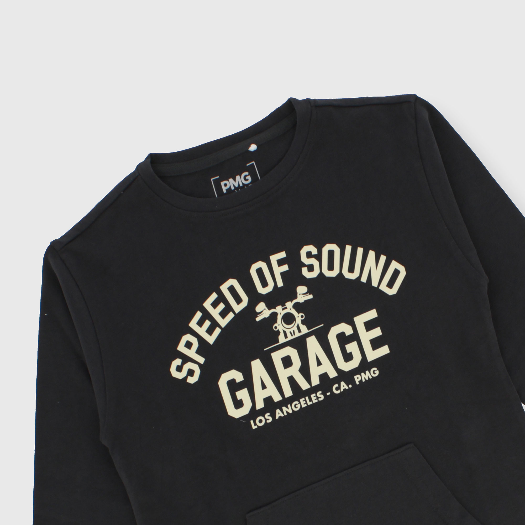 Jersey t-shirt, crew neck, long sleeves. Writing printed with rubberized effect on the front. Kangaroo pocket and side vents.