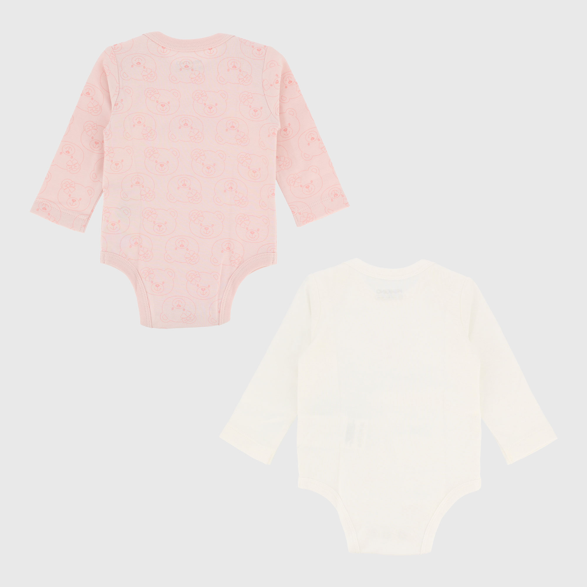 Pack consisting of two warm cotton bodysuits with round neck and long sleeves. Snap button closure on the bottom. A bodysuit with all-over print, and a bodysuit with print on the front.