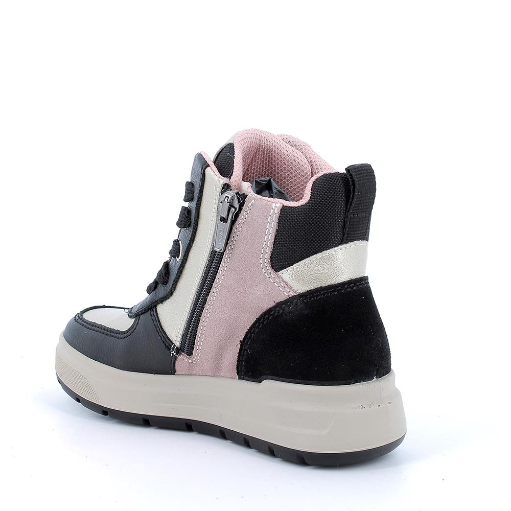 These high-top sneakers for girls guarantee the same protection as ankle boots but will match better with sports outfits. The laces will only need to be adjusted the first time because with the internal zip they can be quickly put on and taken off. The flat, thick sole offers great protection and support, ideal for everyday activities. The removable leather insole guarantees hygiene and breathability.