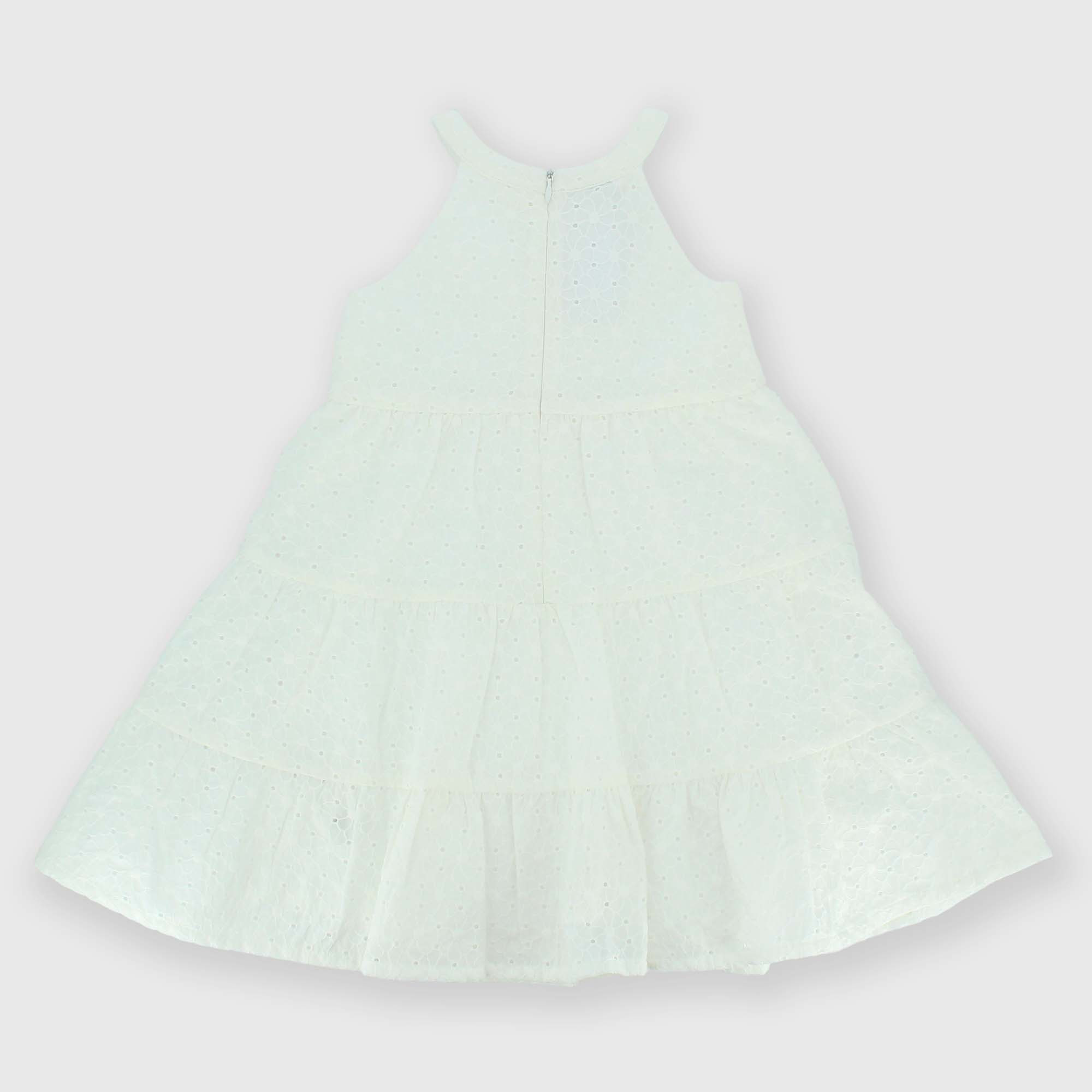San Gallo lace dress with halter neckline. Invisible zip closure on the back. Cotton lining.