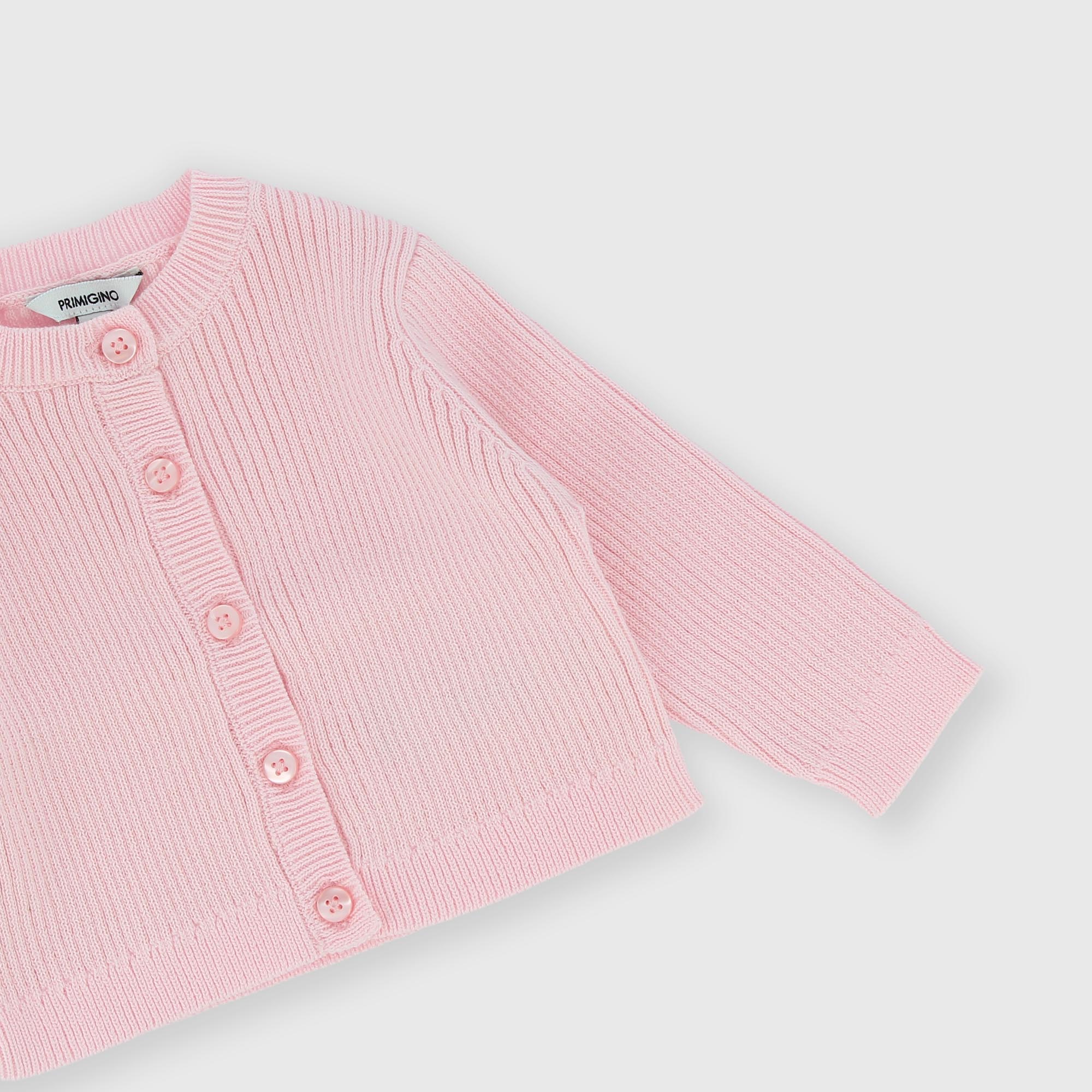 Tricot Cardigan in soft cotton with round neckline. Button closure on the front.