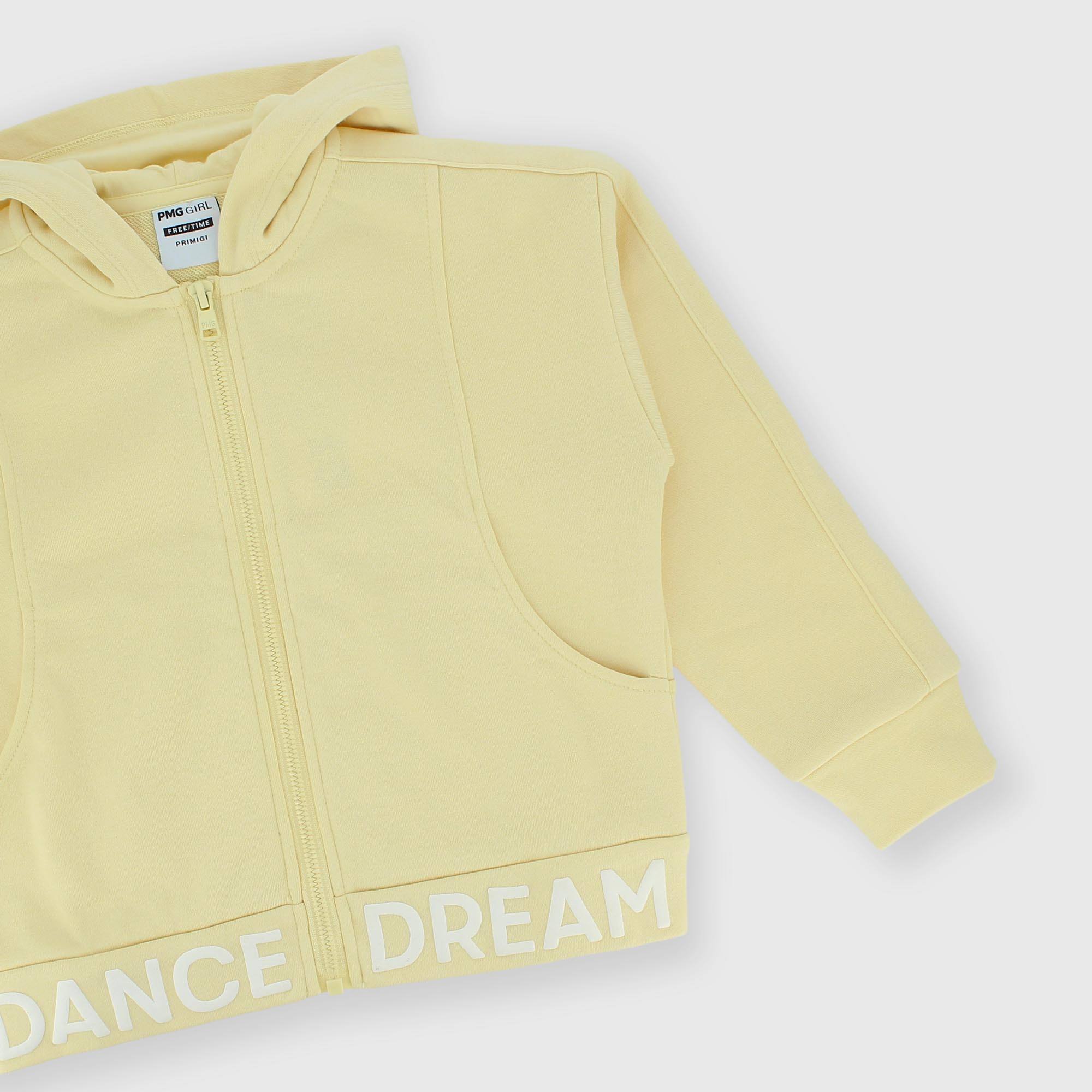 Girl's opened sweat-shirt with hat, beige