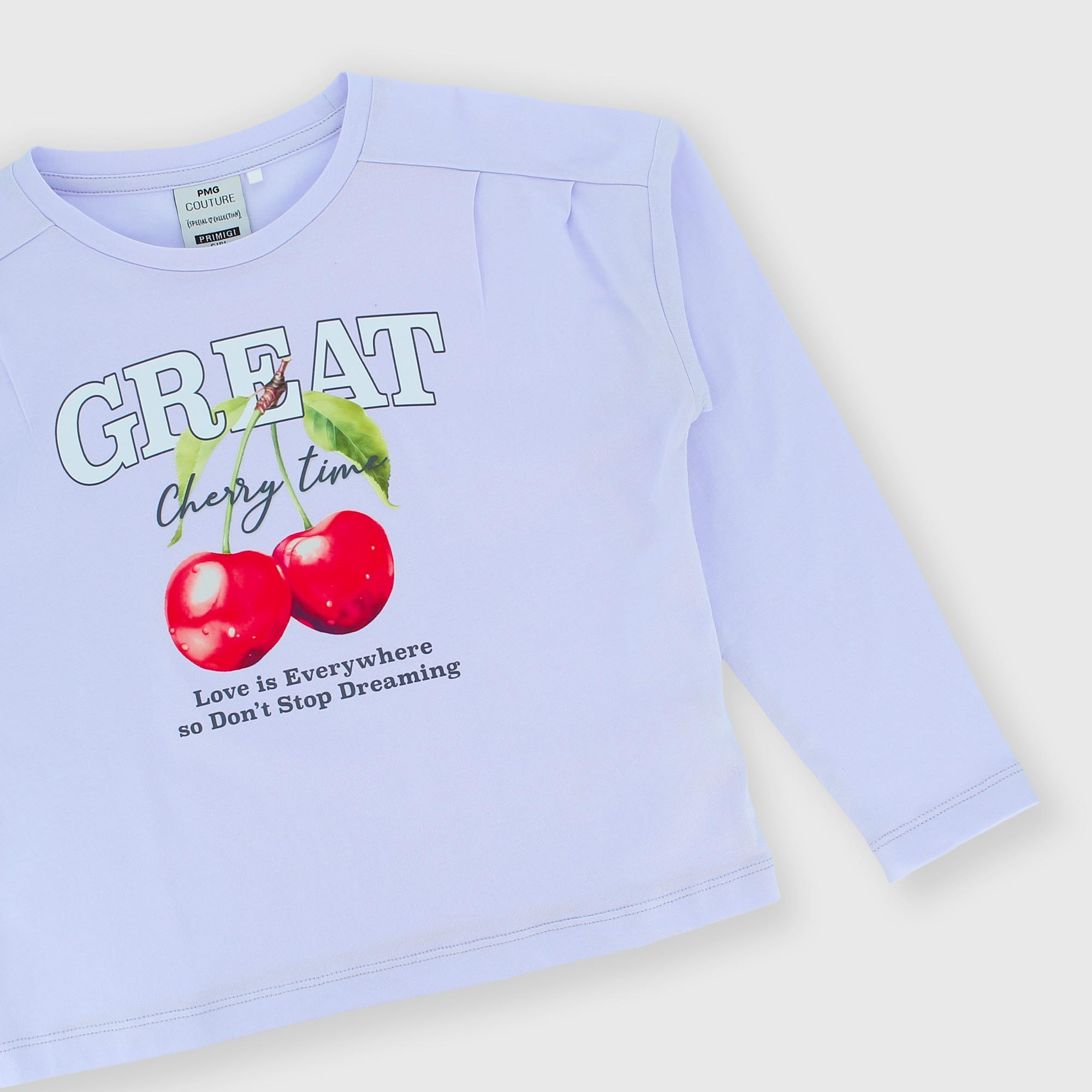 Jersey T-shirt, crew neck, long sleeves. Print on the front.