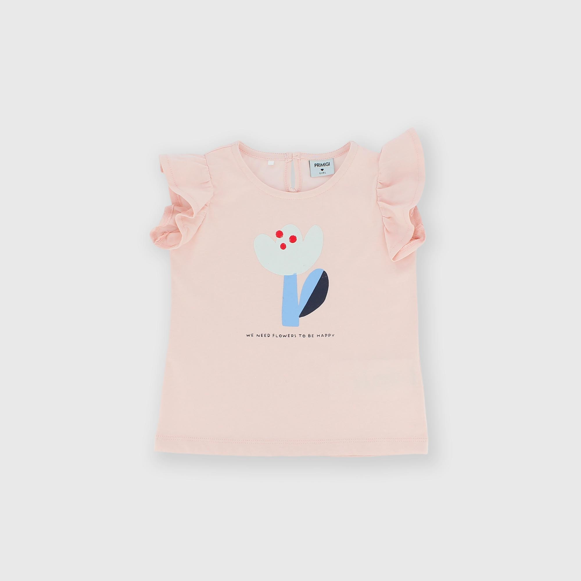 Jersey T-shirt, crew neck, short sleeves. Button closure on the back. Print on the front.