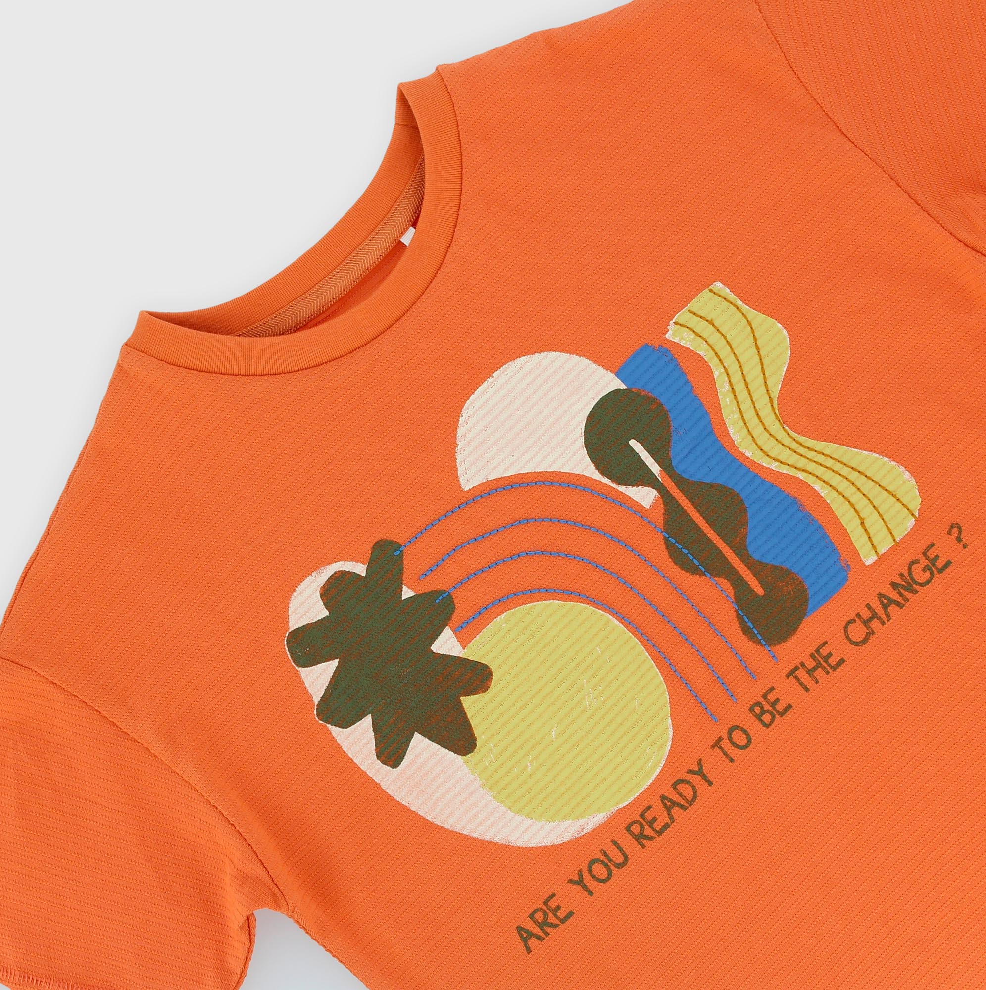 Textured Jersey T-shirt, crew neck, short sleeves. Print with embroidered details on the front.