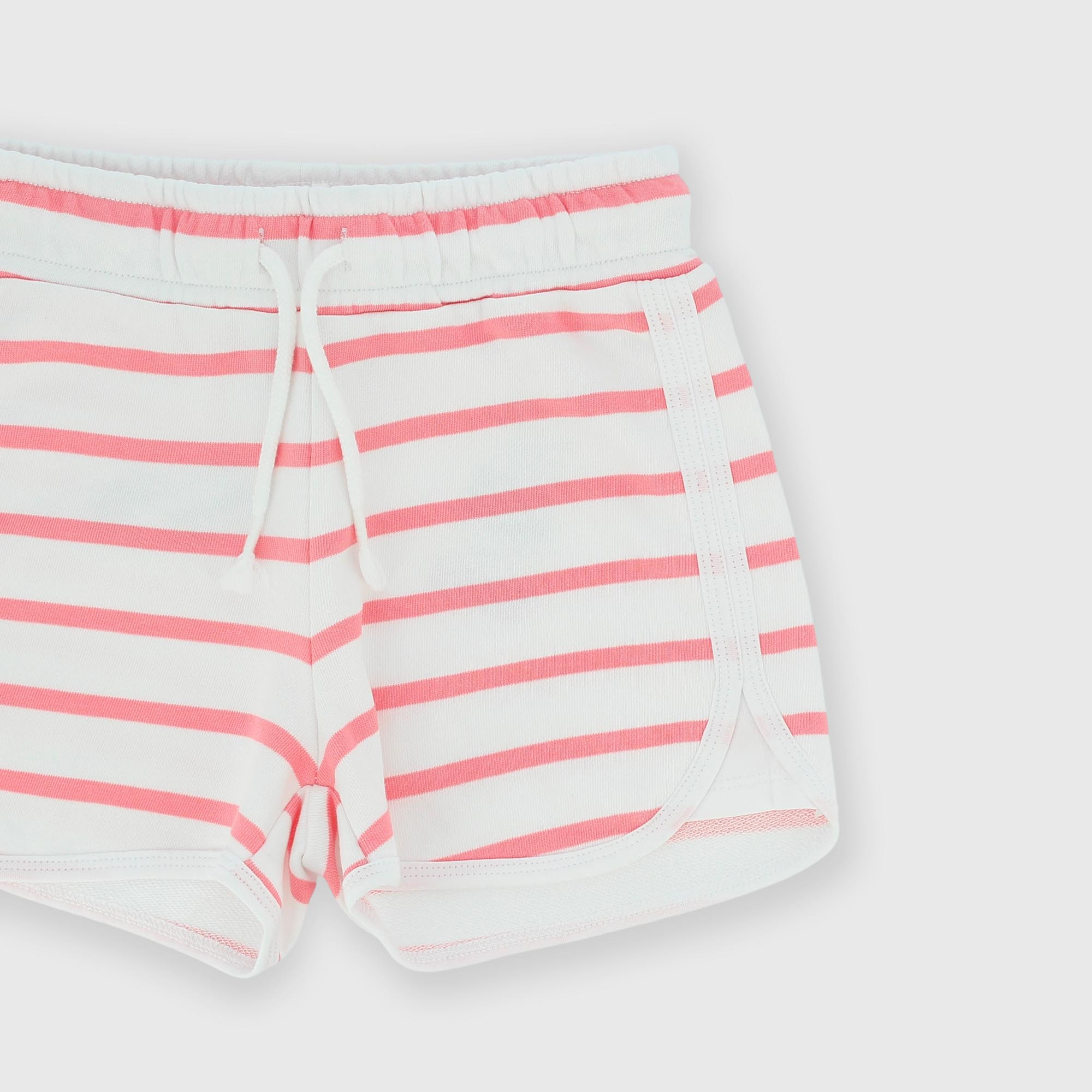 Fleece shorts with elasticated waistband and front laces. All-over striped print.